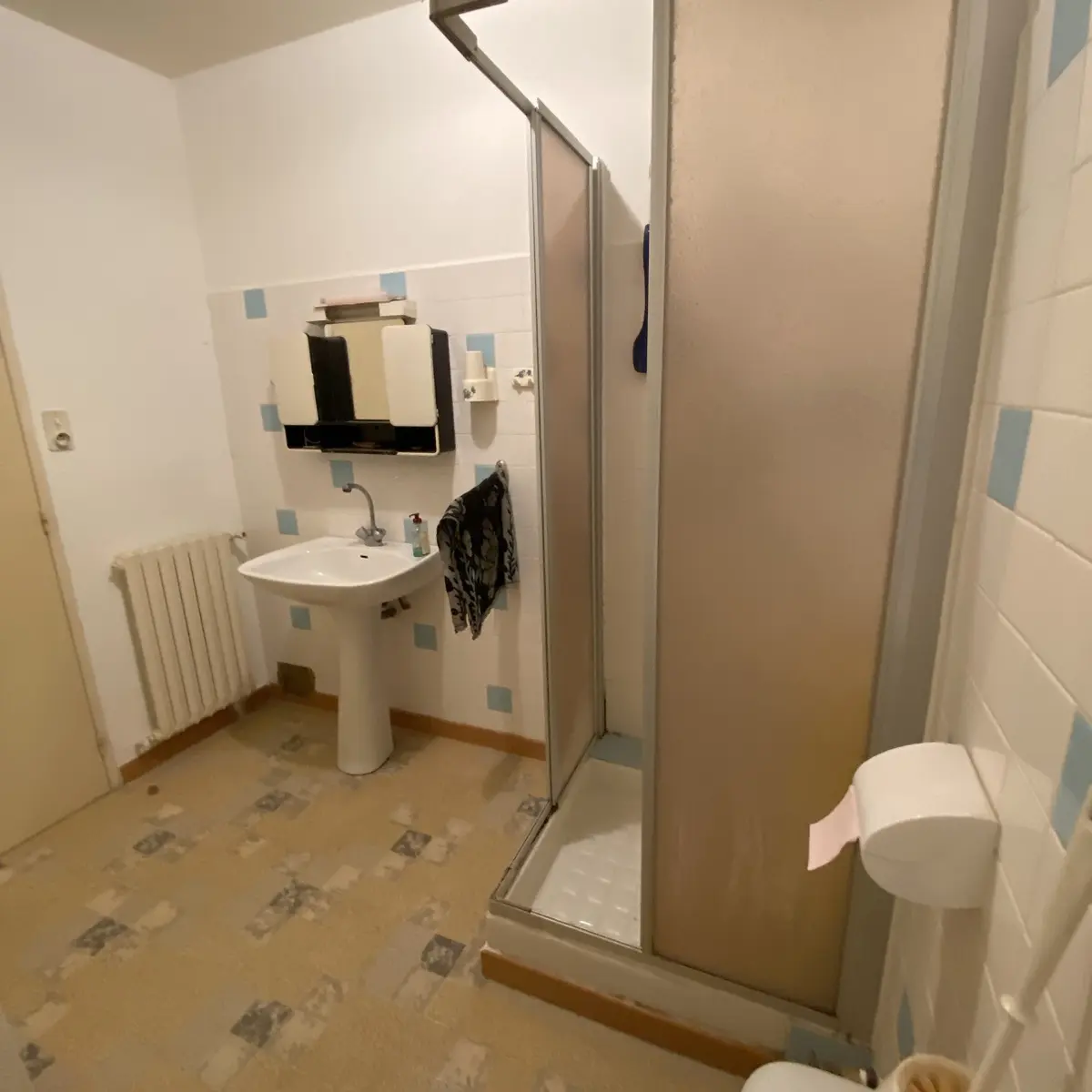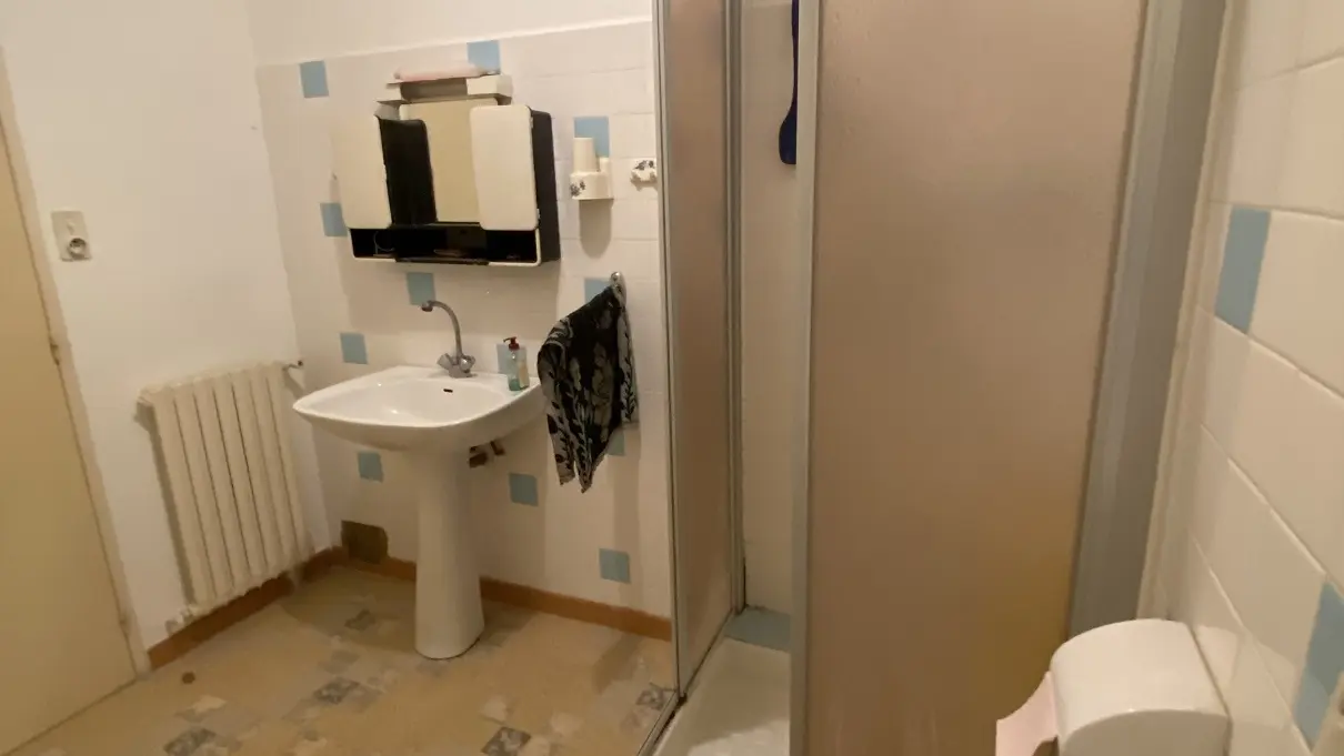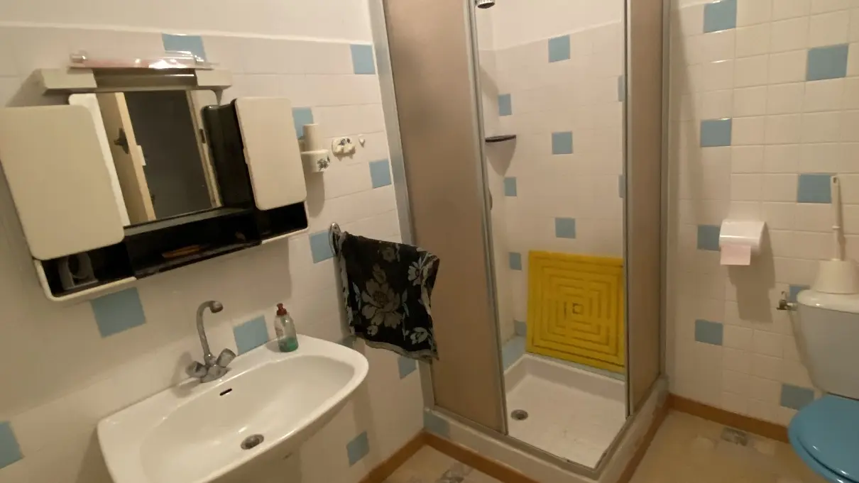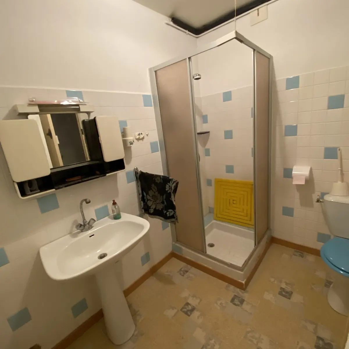 Kitchen equipped with gas stove, fridge, oven, washing machine, TV, 140cm bed (sofa bed). Bathroom with WC and shower