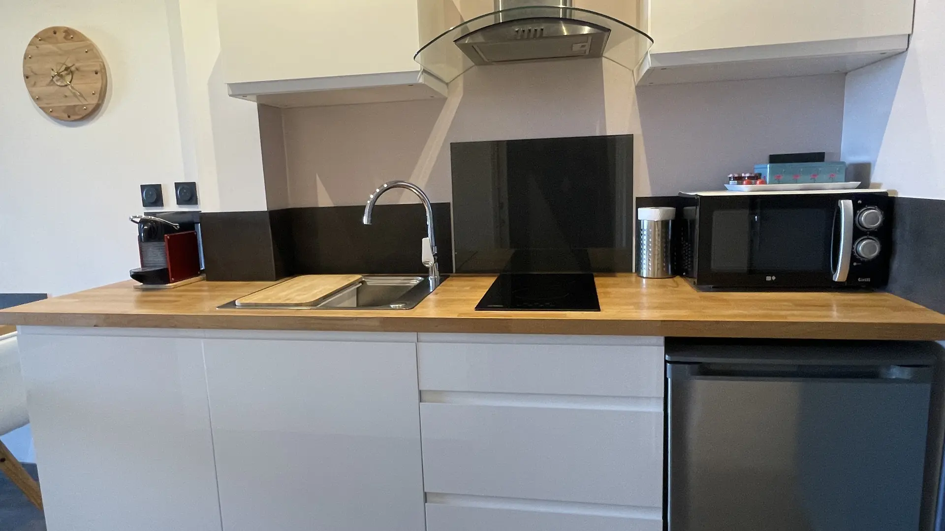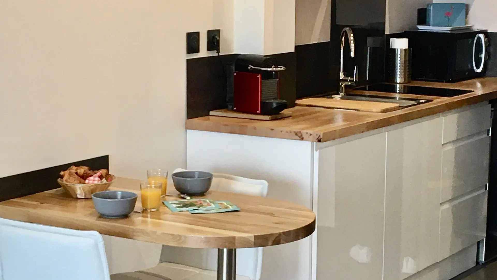 - fitted and equipped kitchen: refrigerator/freezer, ceramic hob, microwave/grill, Nespresso coffee maker, electric kettle, toaster...