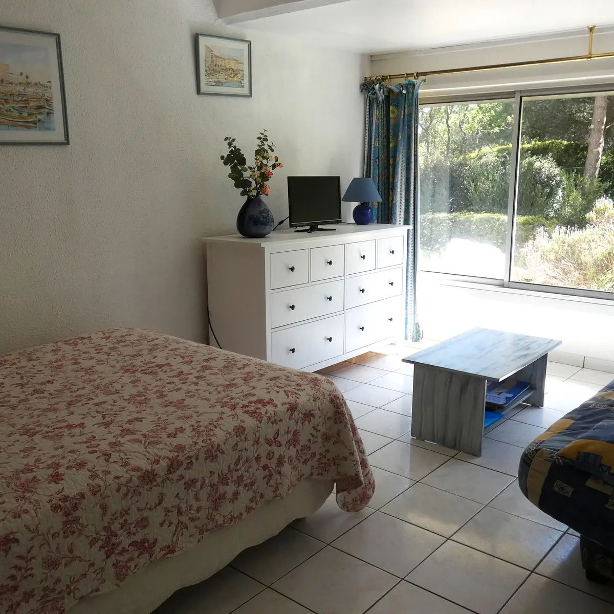 Large studio for 4 people, equipped. Located on the beach side of Les Sablettes and not overlooked.