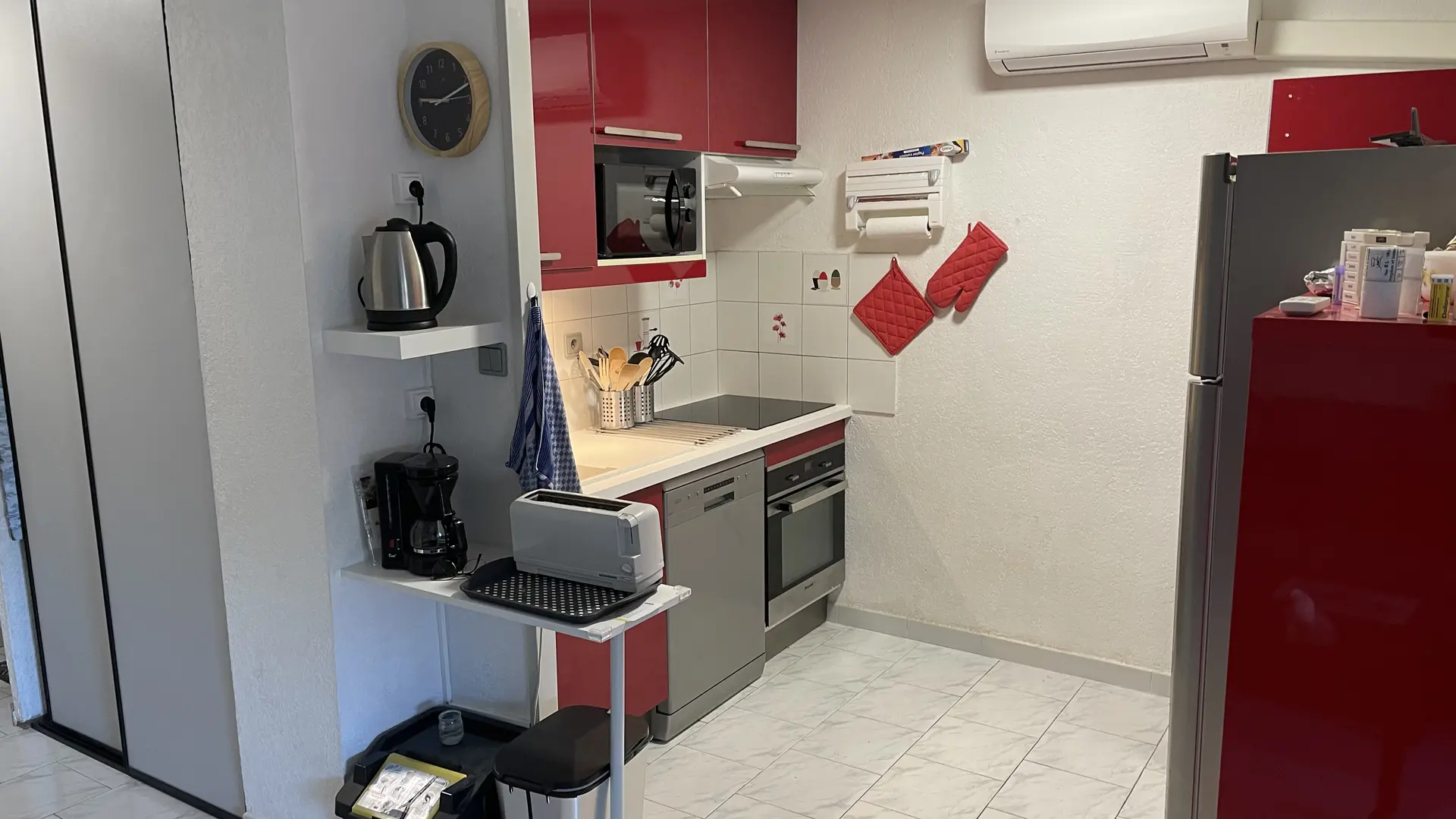 We welcome you to an apartment with a 10 m2 south-facing terrace where you can enjoy your meals.