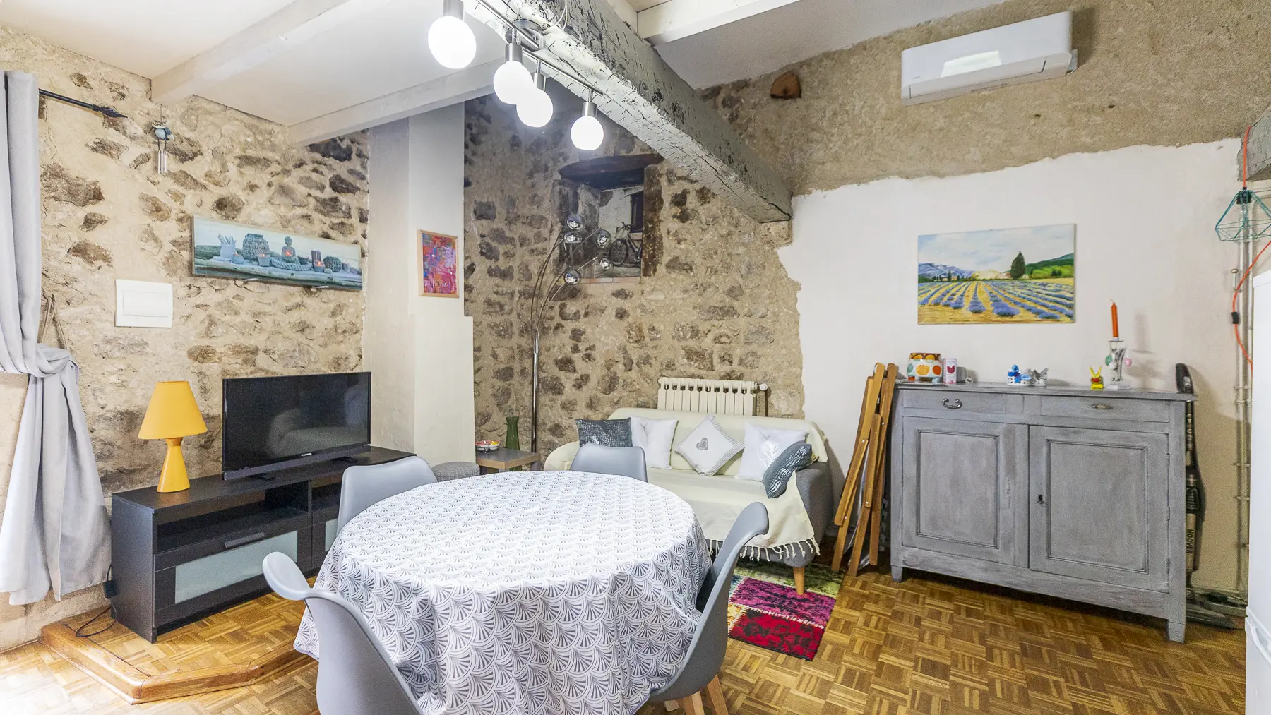 In the centre of Moustiers-Sainte-Marie, this studio with character has been refurbished in a quiet pedestrian street.