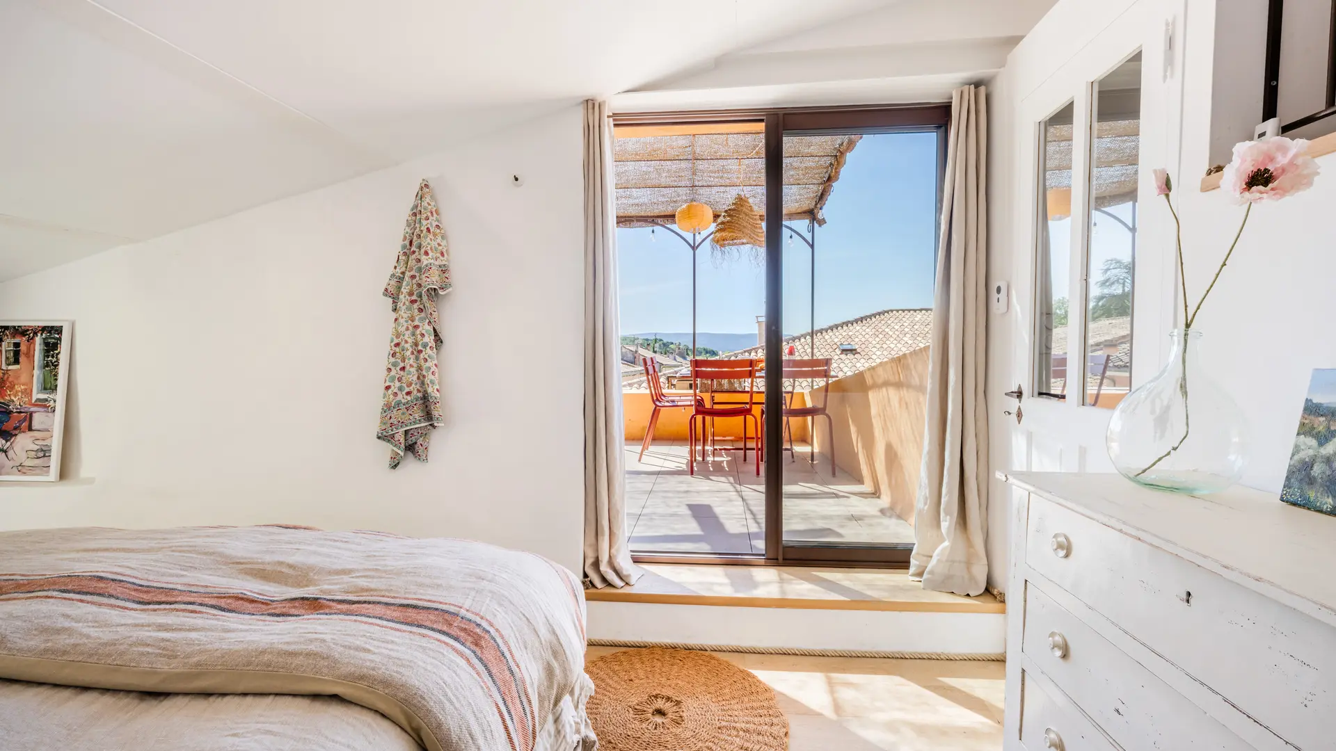 Ground floor: living room with fireplace, fitted kitchen. A bedroom and shower room on the second floor. On the 2nd floor, a bright, air-conditioned bedroom with direct access to a roof terrace. at the foot of Mont Ventoux
