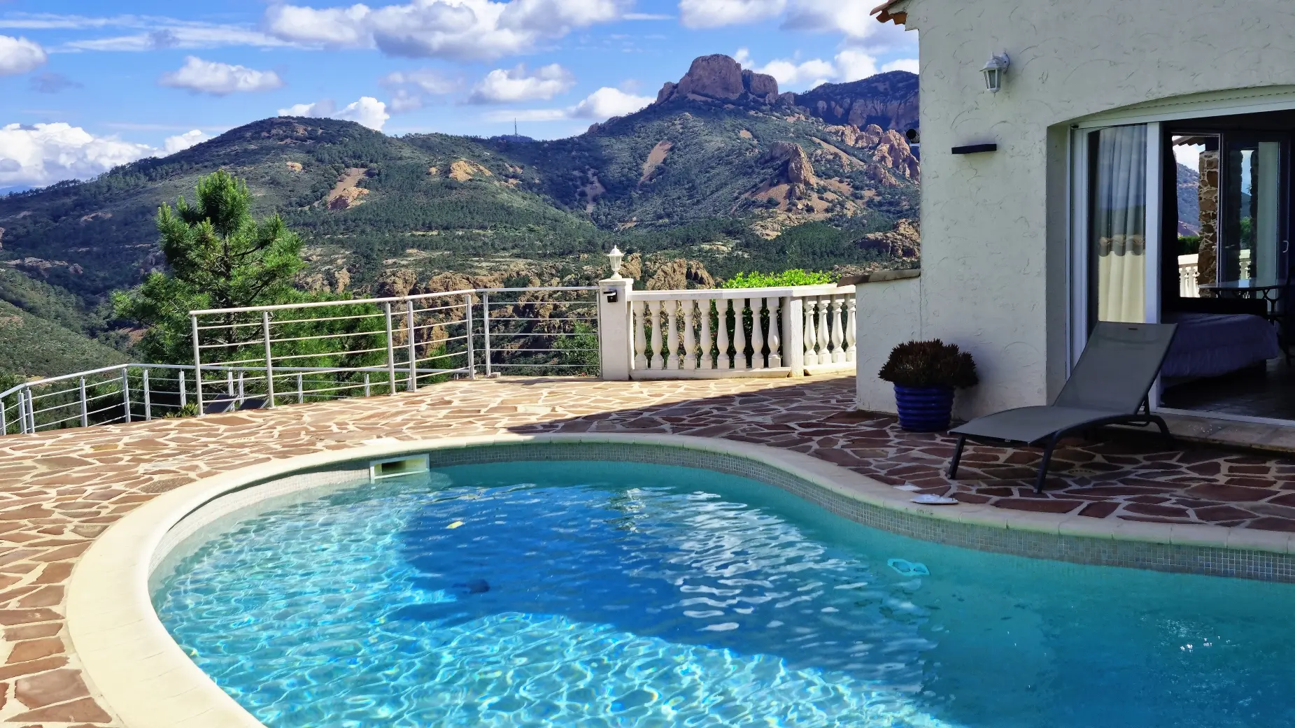 Villa sleeps 10 (4 bedrooms + 1 studio), swimming pool, view of the Massif d'Estérel, view of the Bay of Agay and the Bay of Cannes