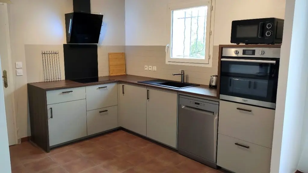 -Fully equipped kitchen: oven, fridge with freezer, induction hob, dishwasher, microwave, etc.