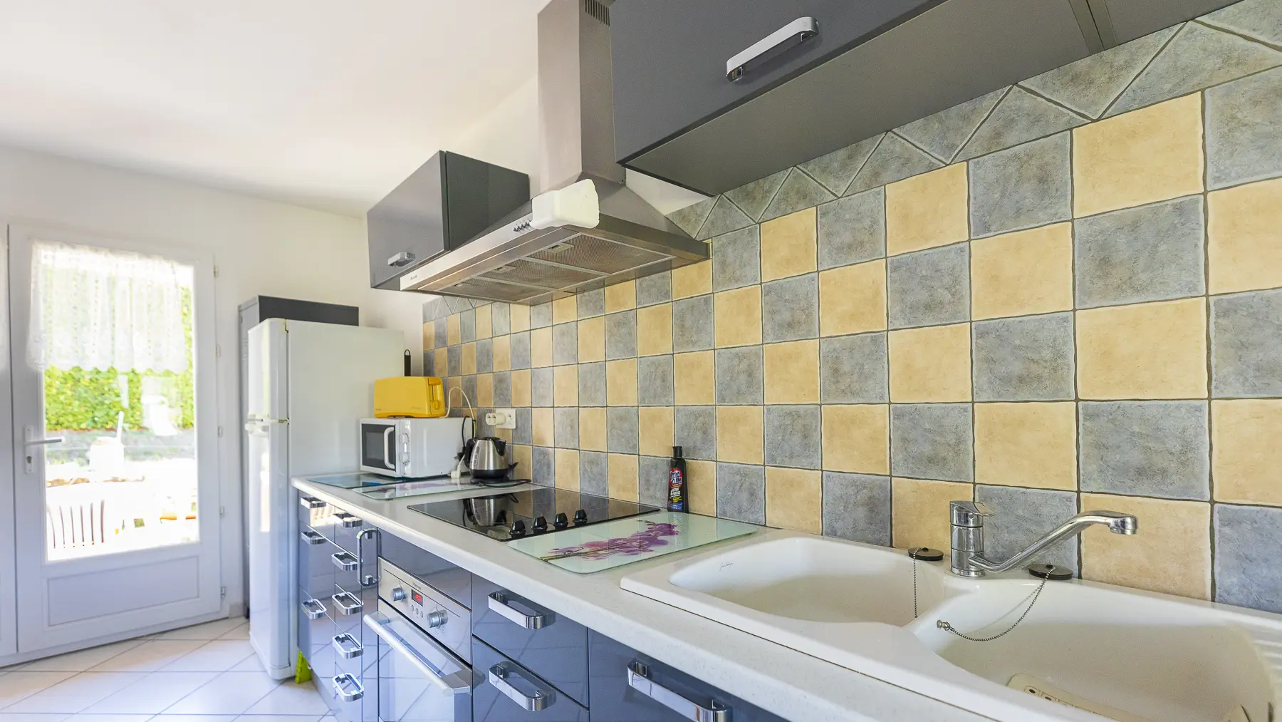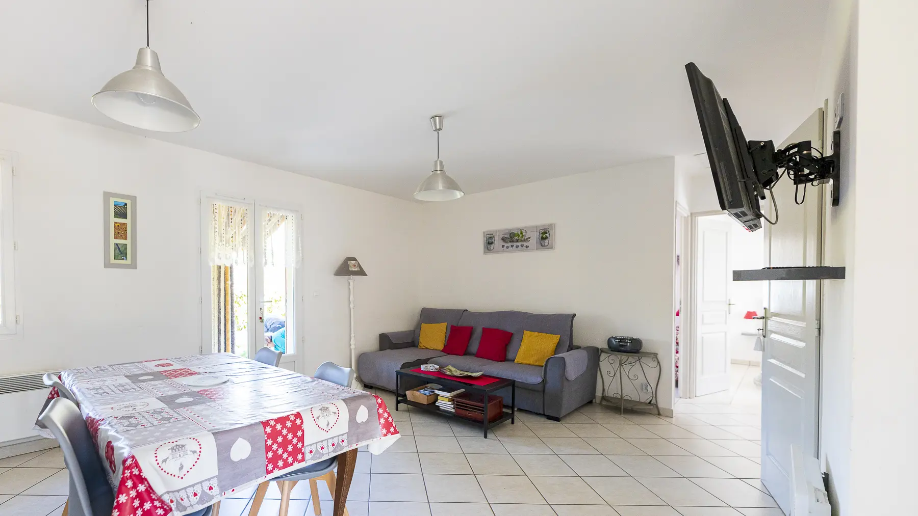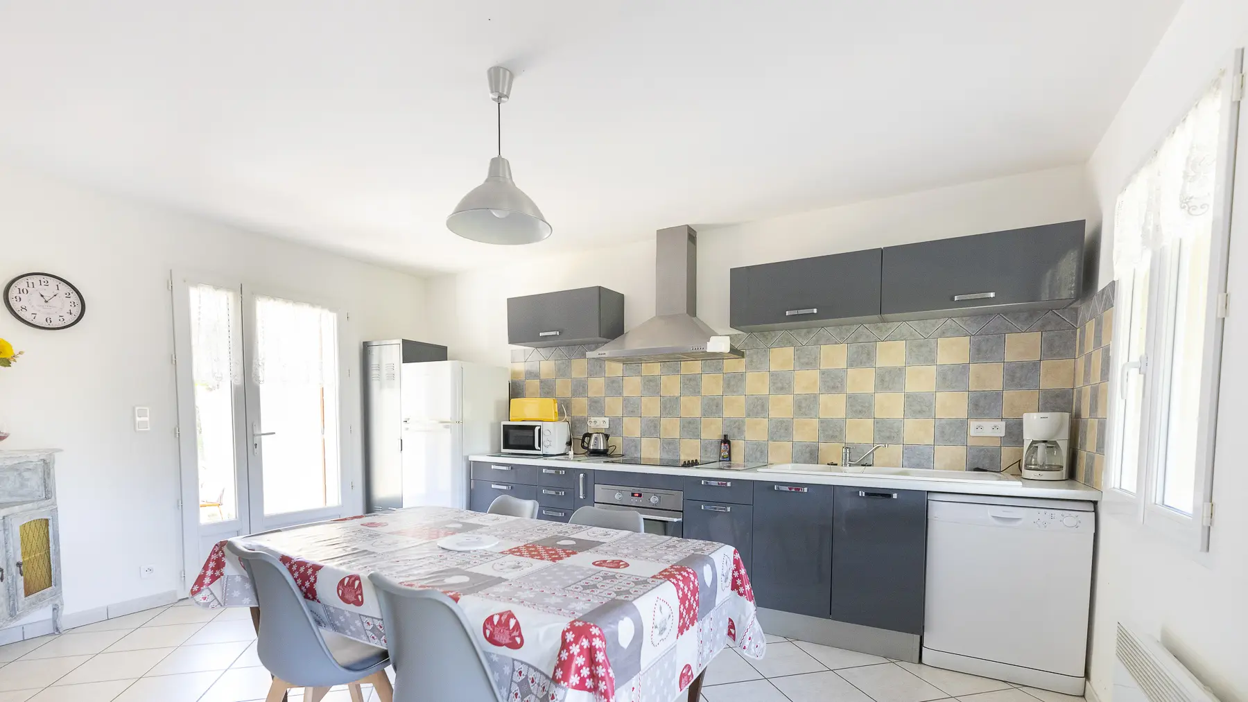 Ground floor cottage 500 metres from the village comprising 2 bedrooms, one with a double bed and dressing room, the other with two single beds and dressing room. 1 bathroom with shower and washbasin, 1 separate toilet, large kitchen-living room with washing machine, dishwasher, fridge, freezer, 4-ring hob, oven, toaster, coffee maker, microwave, iron and ironing board, television, Hi-Fi system, hairdryer, terrace with barbecue and garden furniture, kitchen utensils, crockery and private parking.