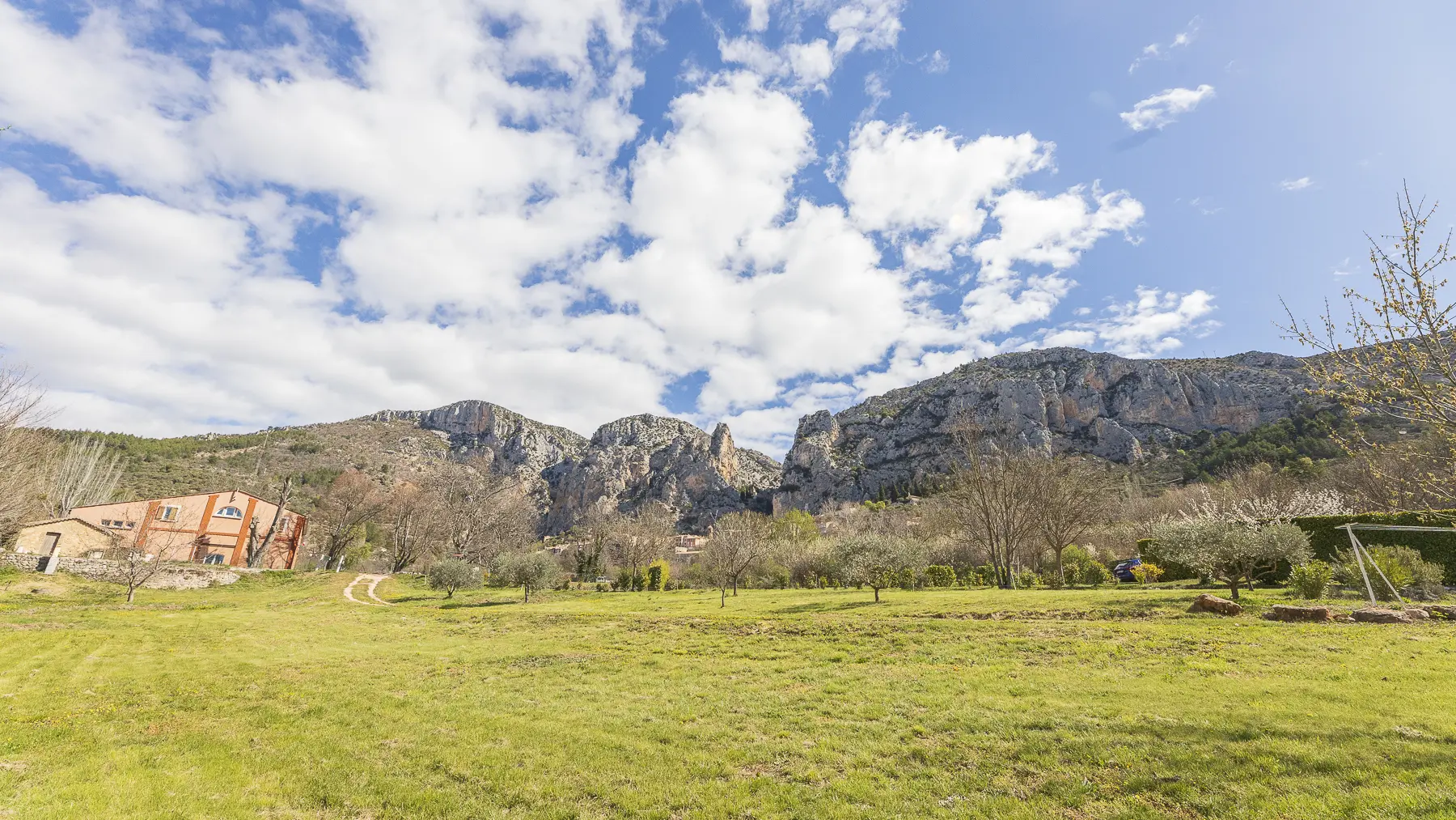 In the heart of the nature reserve, at the entrance to the Gorges du Verdon and Lake Sainte-Croix, a magnificent, recently built villa comprising two gîtes on 3,000 m² of unfenced land, bordered by the river at the foot of the village of Moustiers-Sainte-Marie.