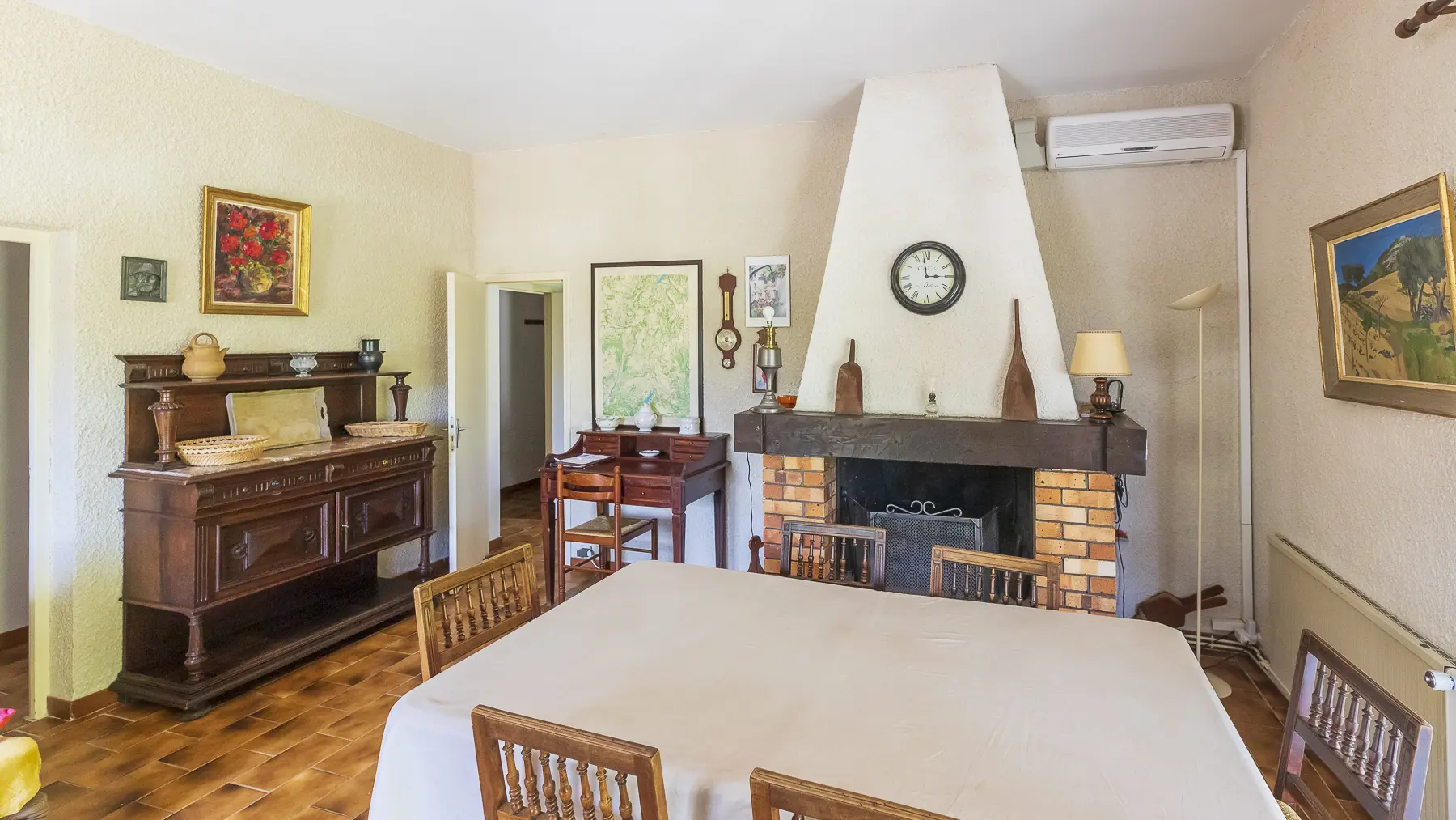 Reversible air conditioning in living room and one of the bedrooms.