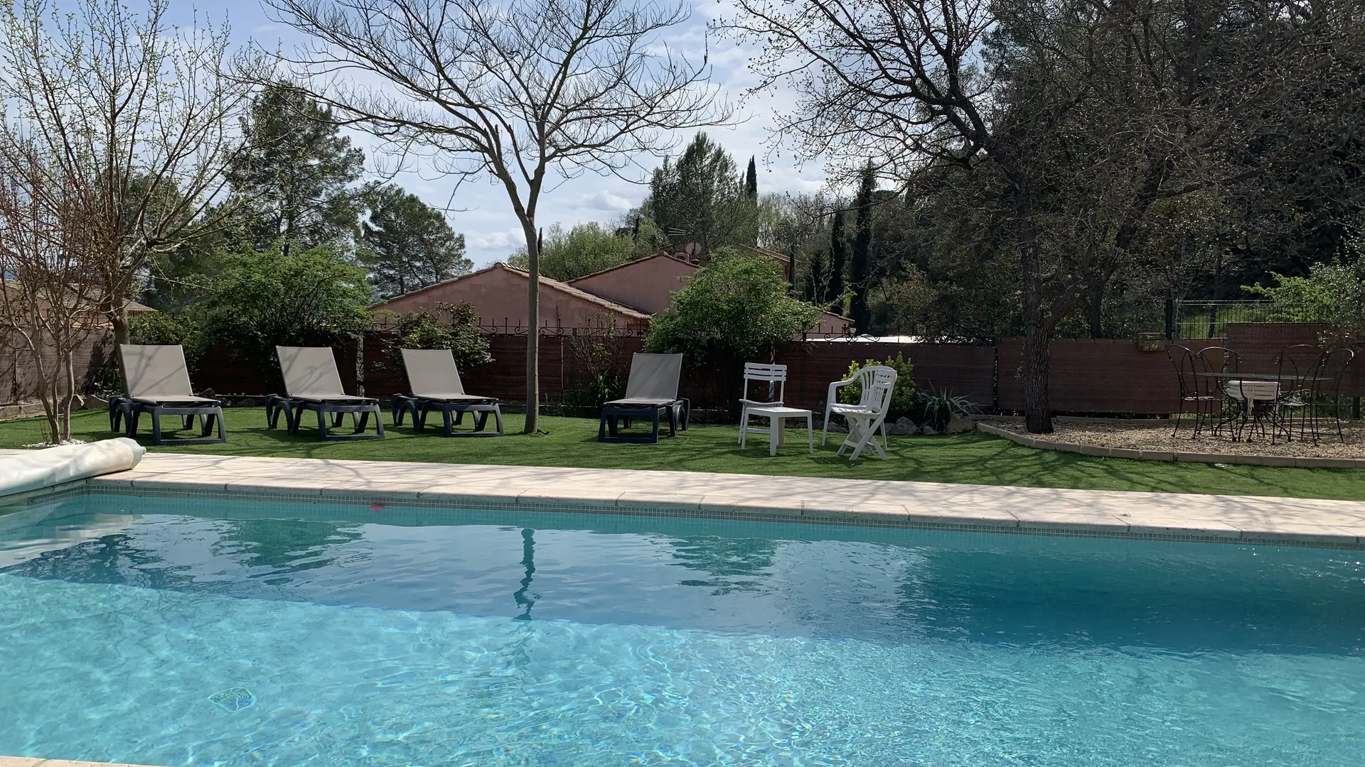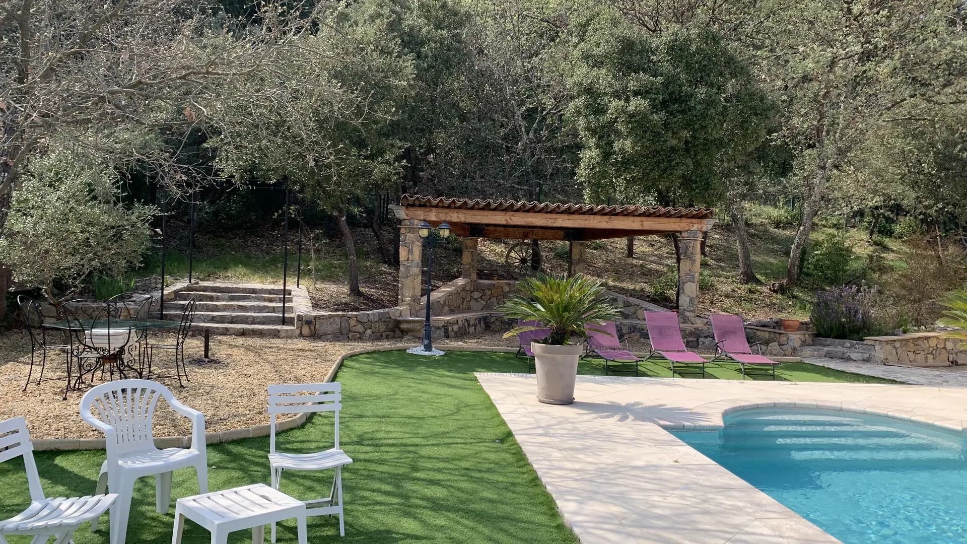 Superb charming villa of 160 m2 with 4 bedrooms, with outdoor heated pool from April to the end of October or on request for other months, jacuzzi and indoor sauna in service all year round, located in a residence "le clos des vignes" quiet with views of the Taradel 300 m from the village of Taradeau. It has a pleasant room + of 40m2 with fully equipped kitchen, dining room, living room with sofa, TV connected, pellet stove, air conditioning throughout the rooms. On the ground floor 1 bedroom with a 160 cm bed, 1 bathroom with walk-in shower, toilet, upstairs 3 bedrooms with 2 bathrooms with toilets including 1 master suite with TV, 2 beds in 160 cm and 2 beds in 90 cm, desk with sofa, below the ground floor you will find a jacuzzi, a sauna, a shower, a lounge with multicolored LED lighting, books, board games, connected TV, bar. Wifi optical fiber, ground of 1000m 2 fenced with field of pétanque, barbecue, 8 deckchairs. Dog accepted with supplement, linen provided. Tourist Sites within a radius of 45 km Saint Tropez and the Gorges du Verdon, 30 km from the sea Fréjus, Saint Raphael, Sainte Maxime, 45 minutes from Cannes, and 1 hour from Nice and Marseille