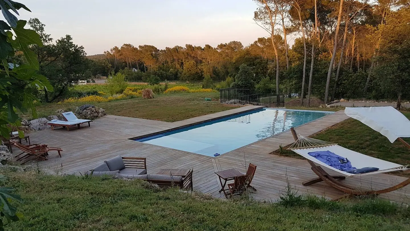 Located halfway between Saint-Tropez and the Verdon Gorges, this holiday rental is set in a peaceful environment amidst vineyards. All essential shopping facilities are within easy reach. The property offers a range of amenities, including tree climbing, a saltwater swimming pool, a boules court, snooker, ping pong, and a trampoline