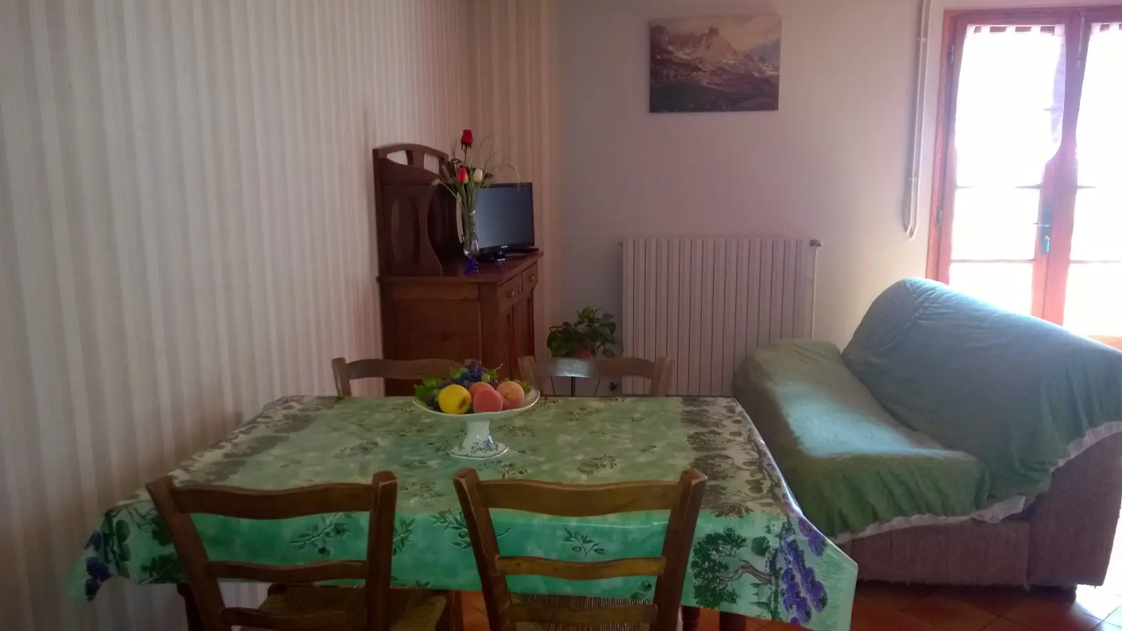Apartment for 2 to 4 people, 40 m² on the first floor of a large chalet. One separate bedroom and an independent bedroom on the level above accessible by separate stairs. Parking space, balcony and terrace.