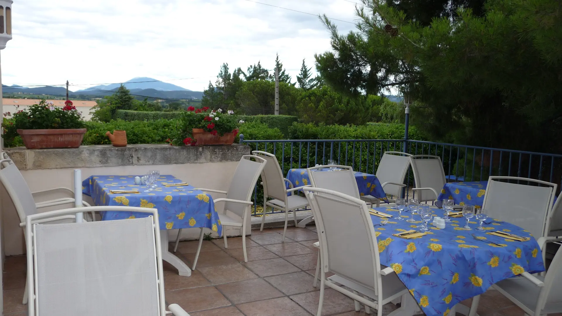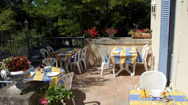 Typical Provençal dishes using exceptional local produce. Our regional cuisine is served in a traditional late 19th century house at the heart of the vineyards or on a fl owery terrace looking out on the Ventoux. Garden and swimming pool.