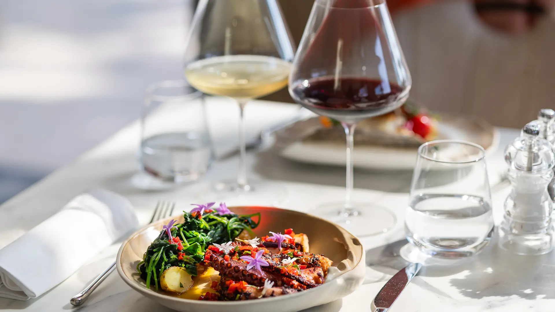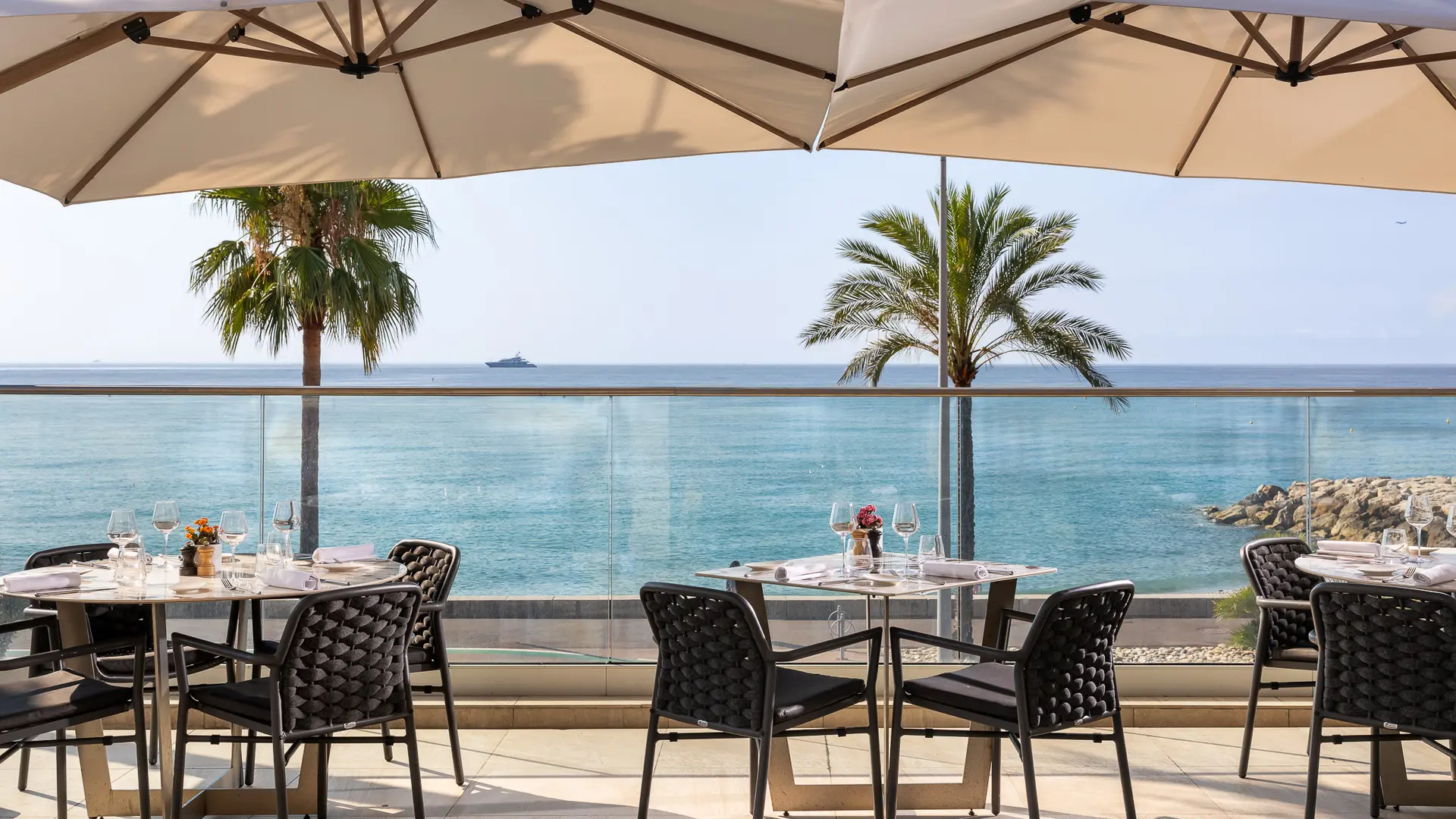 Enjoy a Mediterranean meal, where the finesse of French cuisine meets the creative inspiration of our chef. Ideally located between Nice and Cannes, in the heart of the French Riviera, our restaurant welcomes you for lunch or dinner with a panoramic view of the Mediterranean Sea, on a shaded terrace under a pergola. Whether for a family meal, a romantic dinner or a convivial moment with friends, you will enjoy a dining experience that is as refined as it is warm.