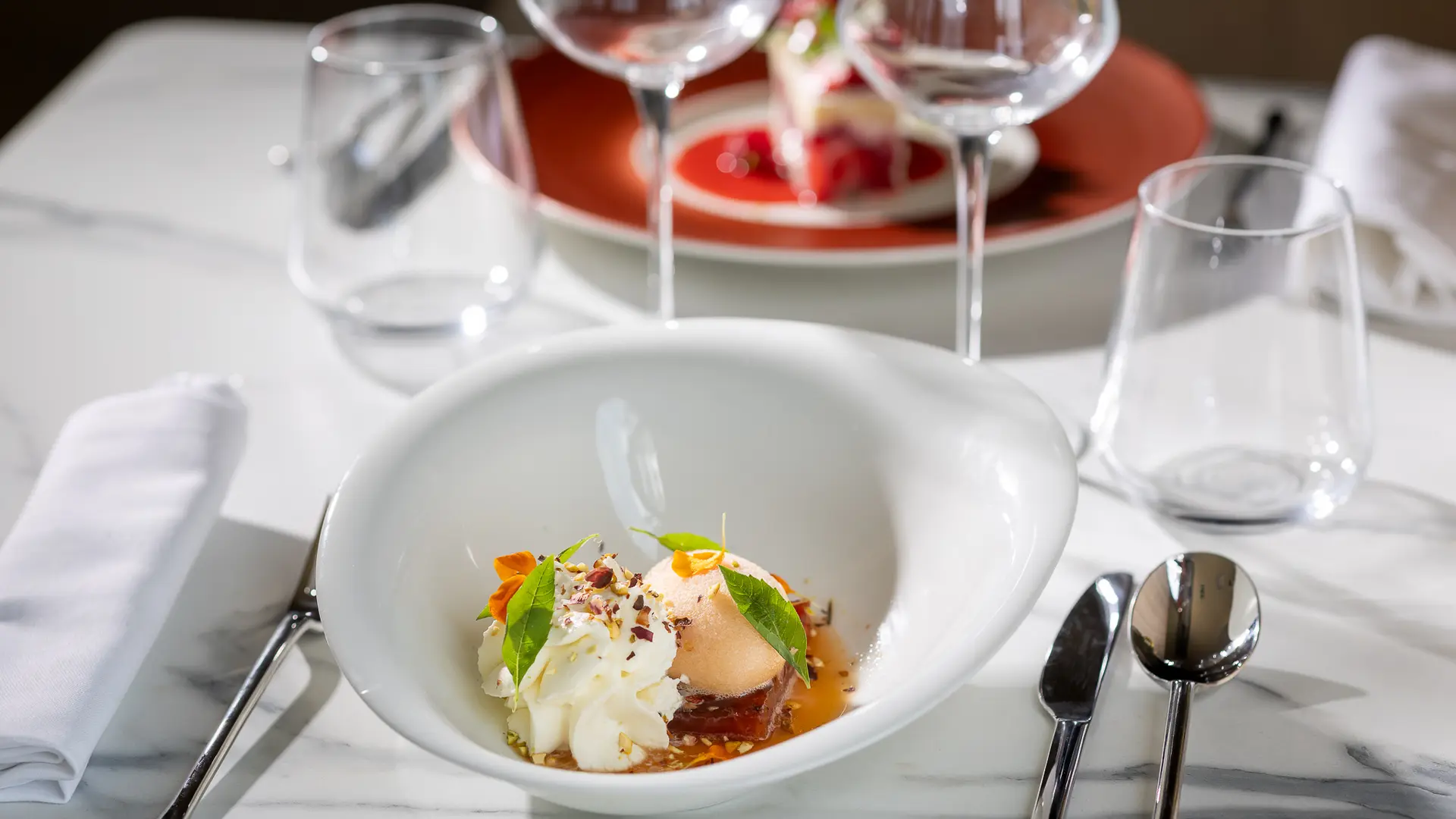 Duo menu €29 (starter/main course or main course/dessert) – Every lunchtime except weekends and public holidays