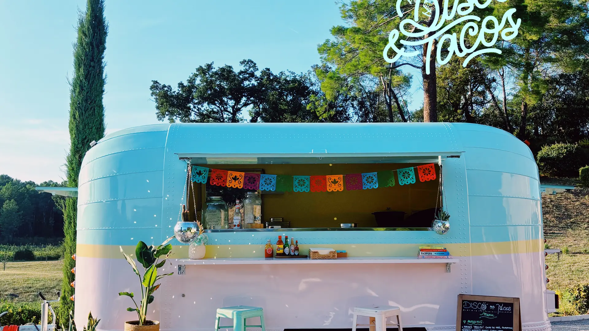 Based in Aix-en-Provence, Disco & Tacos is a food truck specialized in events. It offers gourmet and convivial cuisine, revisiting the key recipes of Mexican street-food. Housed in a pastel-colored air stream caravan converted into a professional mobile kitchen, Disco & Tacos travels the roads of the PACA region, offering high-quality mobile catering for all types of events: festivals, private parties, corporate events, weddings, birthdays, christenings, etc.
