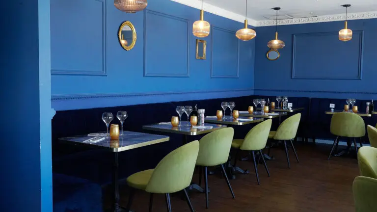 Set back slightly from the seafront, the restaurant offers 4 dining areas. Inside, a room on the ground floor is reminiscent of a chic, refined trattoria, while upstairs, a more baroque room, in azure and yellow colors, responds to the panorama offered by the large bay windows.