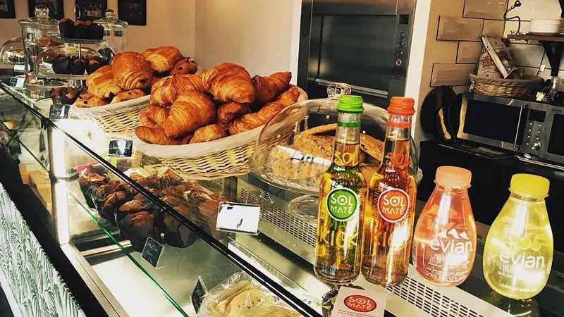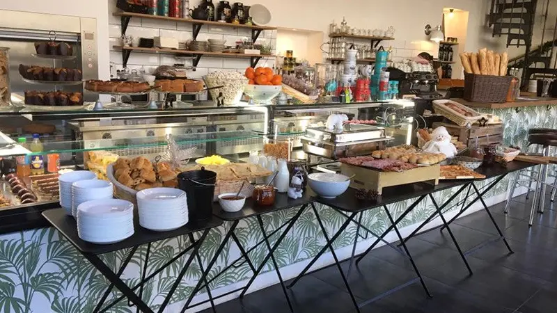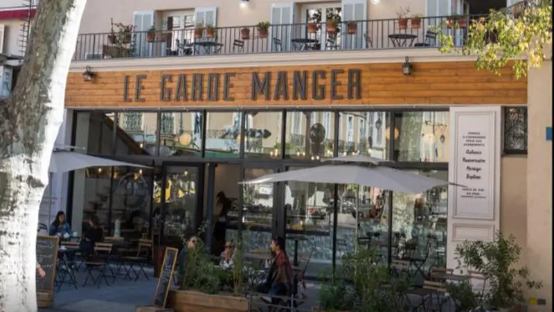 Le Garde-Manger serves cake and warm pastries for breakfast from 9am. It serves hot dishes and salads of the day for lunch that are made on site (kitchen on second floor).