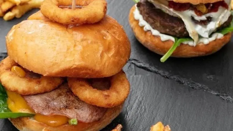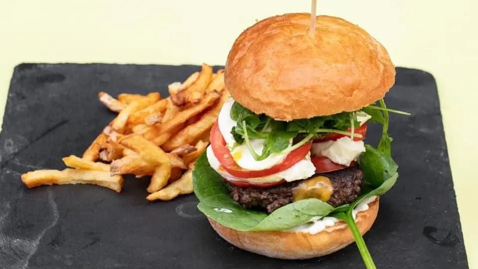 Homemade burgers (beef, vegetarian, vegan).