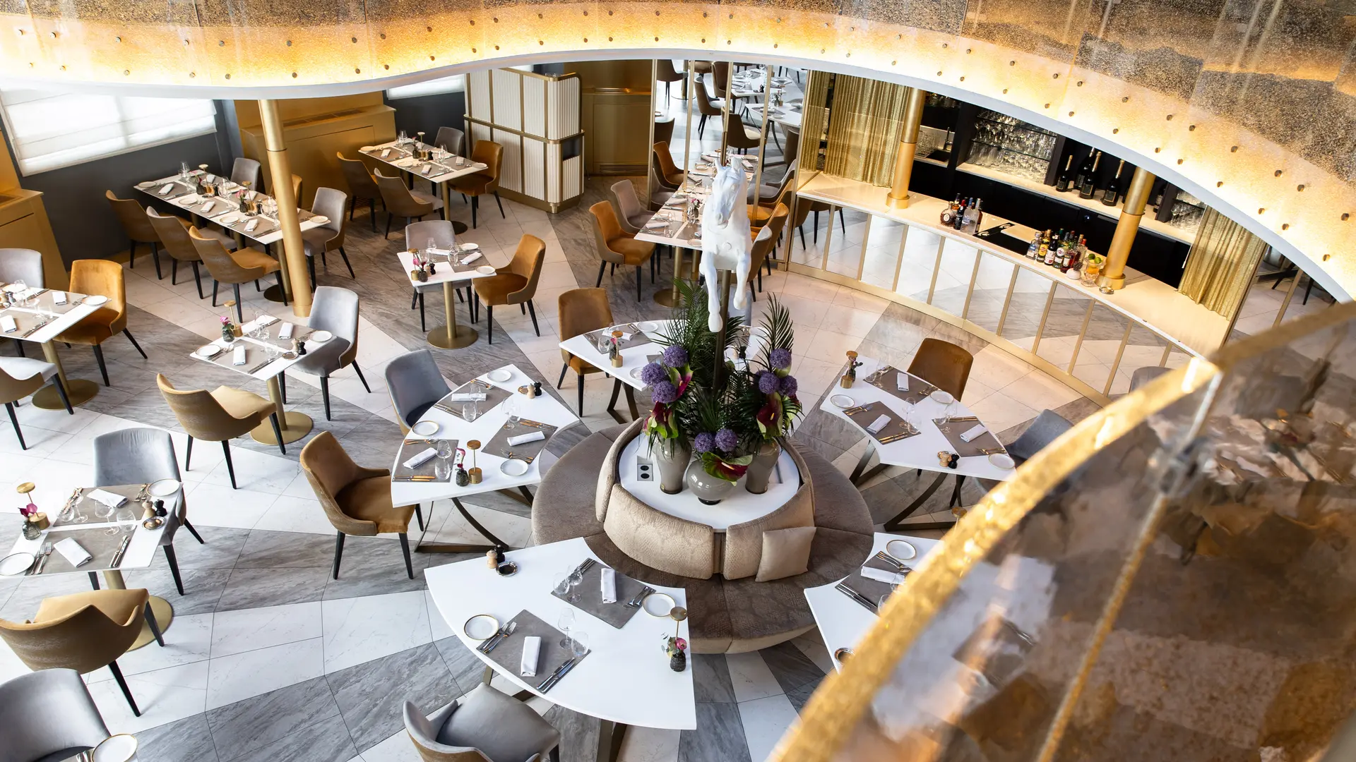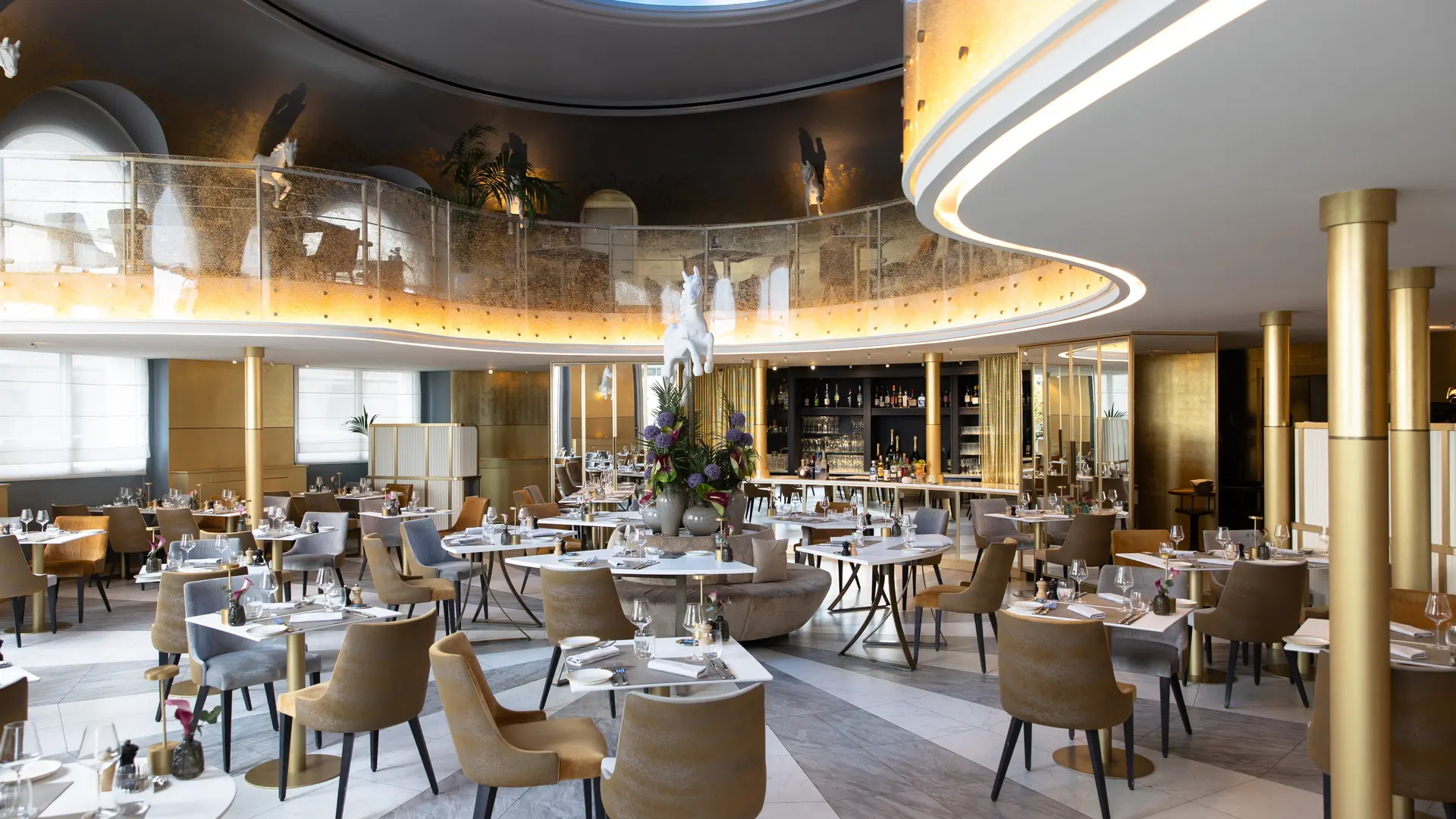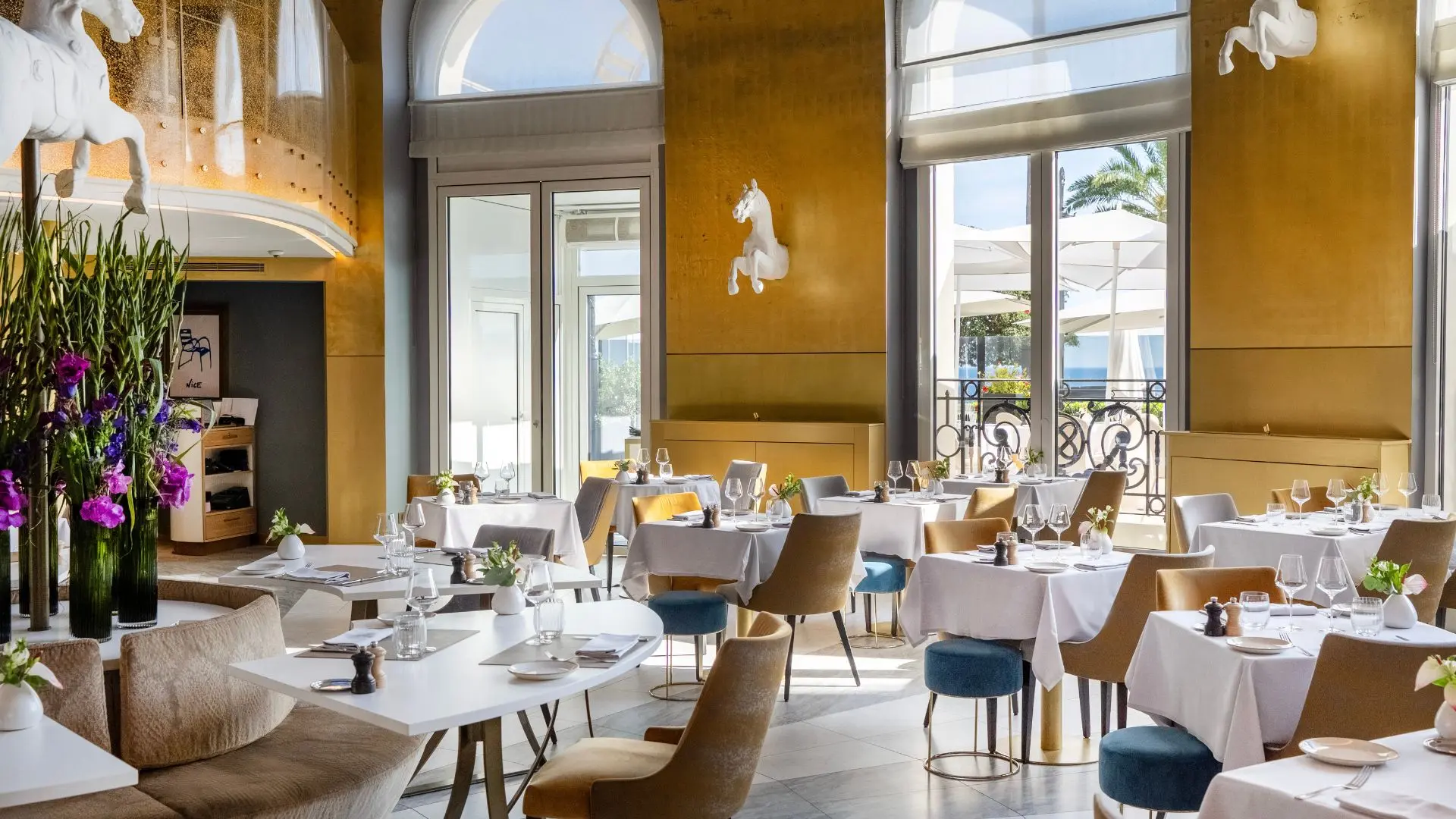 In its gold and white tones, La Rotonde is the very expression of the Riviera, a chic and relaxed version. This brasserie is a veritable institution dear to the hearts of the people of Nice.
