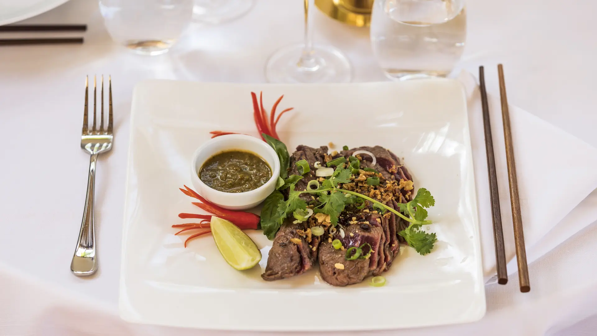 At dusk, the Saint-Amour restaurant offers you a unique pan-Asian