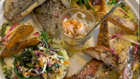 Our fish are caught in the Mediterranean by our fishermen from Mourillon, Hyères, and Carqueiranne. Our meat also comes from the region, particularly from the Haut-Var. Consequently, our menu is constantly evolving, adapting to the products our producers offer us. Our chef emphasizes creative, original, and colorful cuisine, with all his heart to delight you.