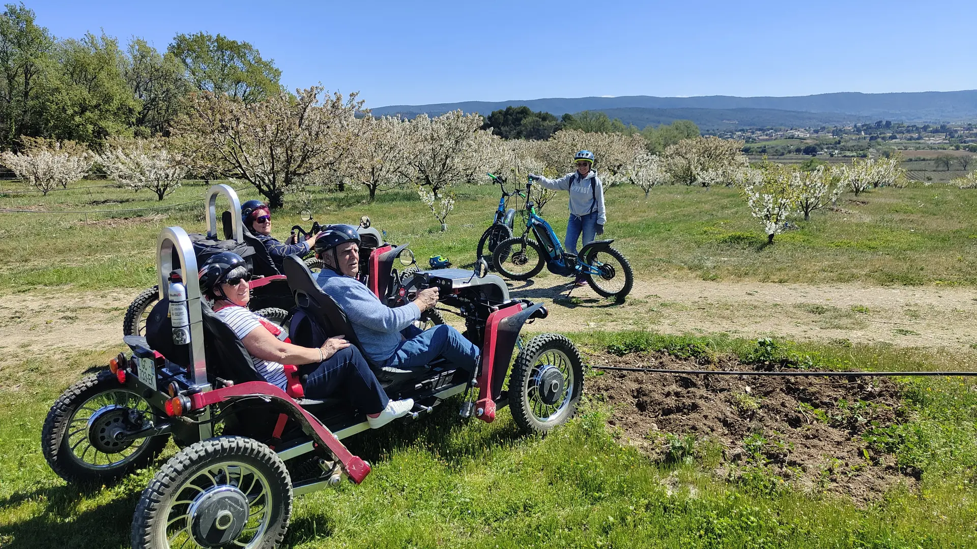 Discover our electric all-terrain Swincars, solo or duo, during guided discovery rides off the beaten track. E-trottinette rides and E-MTB and E-hybride bike rental are also available.