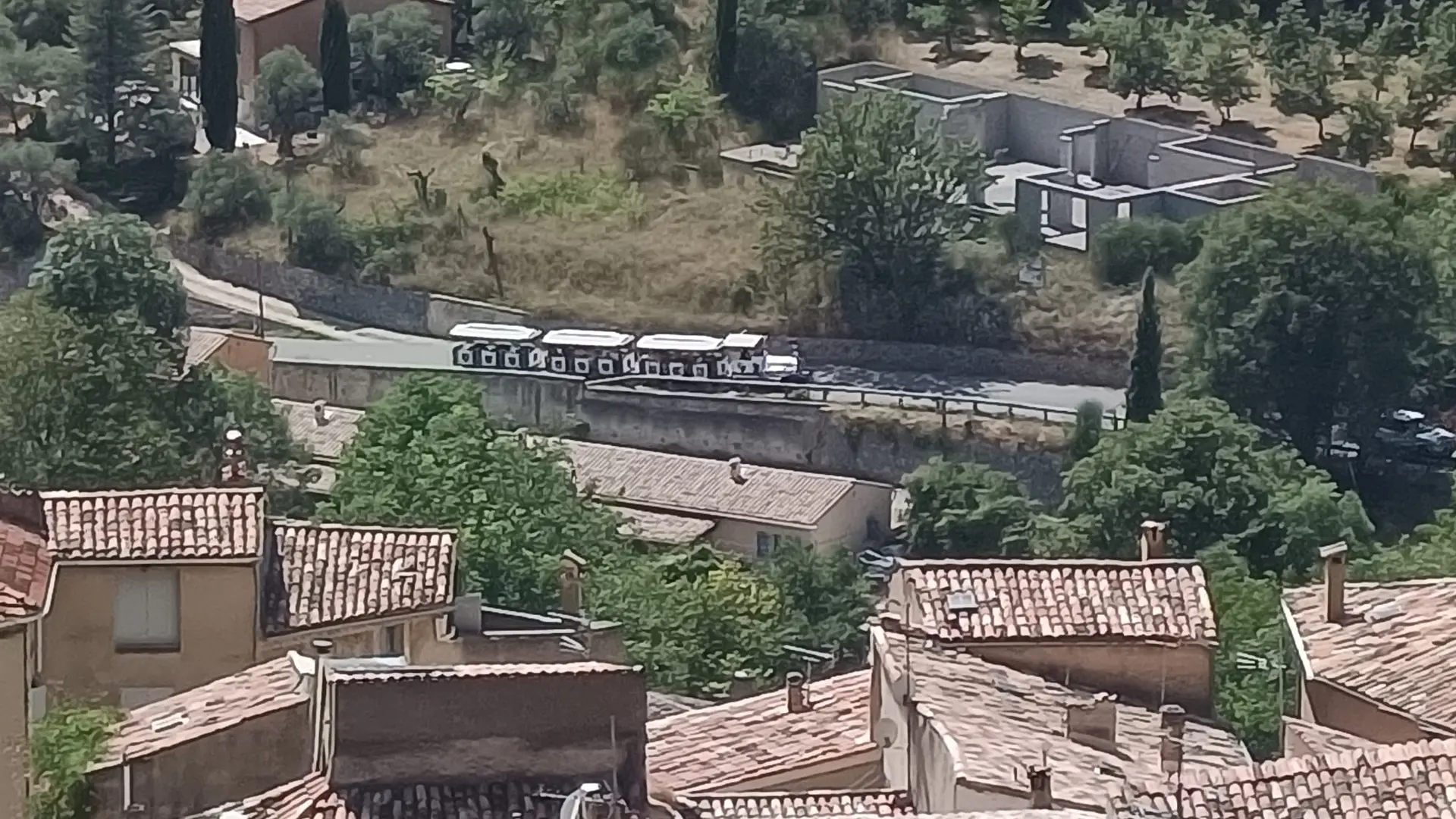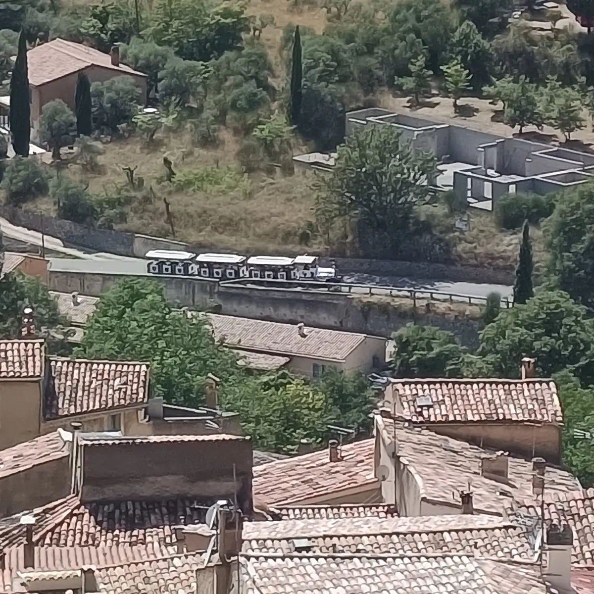 The little train takes you up to the village, with a commentary on the history of Moustiers-Sainte-Marie.