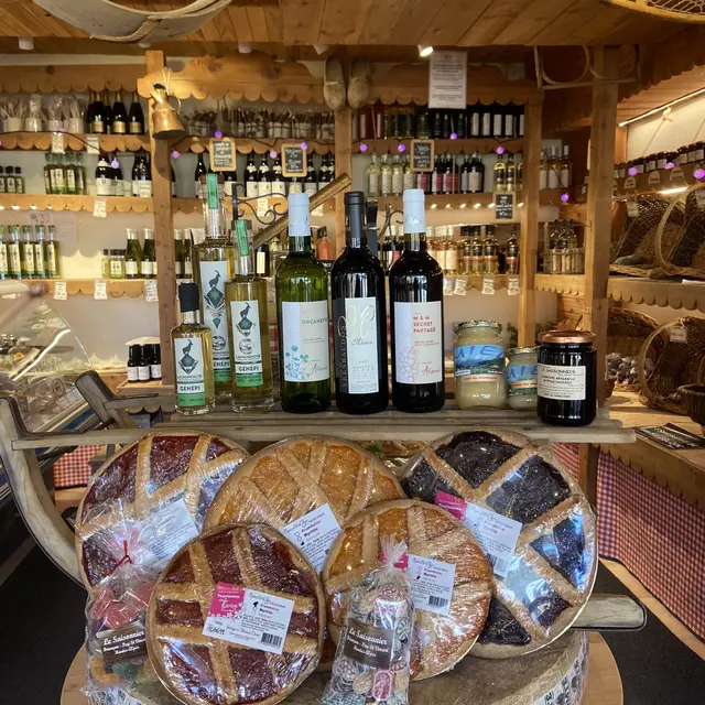 salamis, cheeses, wines, liqueurs, honey, jams, sweets and