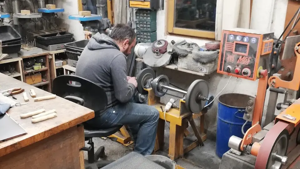 I offer to sharpen your pocket, table and kitchen knives, as well as pruning shears, axes, etc., at fairs and markets and in my workshop.
