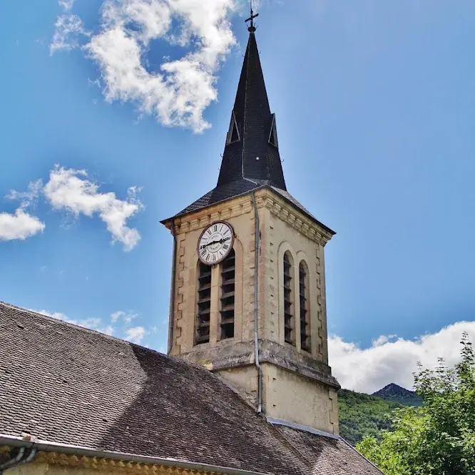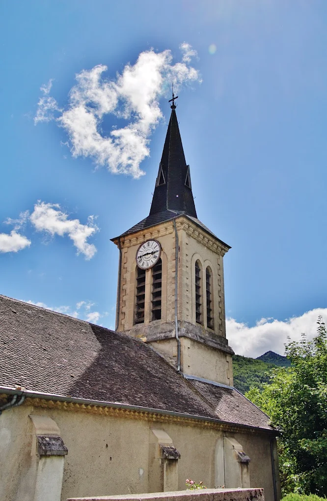 Romanesque, rebuilt in the 19th century. It houses two listed paintings, "The Assumption of the Virgin" and "The Virgin and Child", from the former Chartreuse de Durbon, and a stone Carthusian cross in the forecourt.