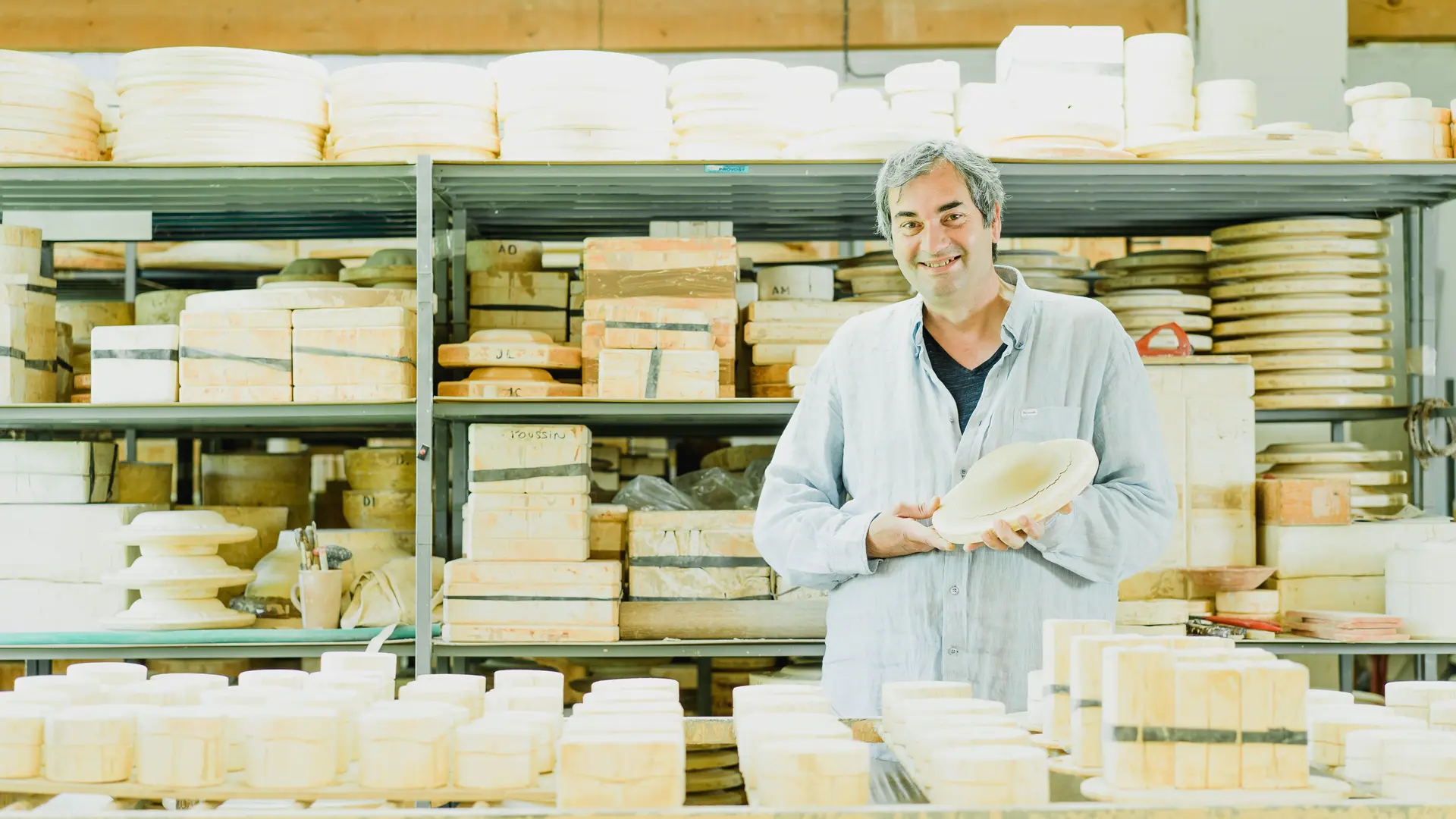 Modelling, embossing, turning; having parents that owned one of the most famous workshops in Moustiers, l’Atelier de Ségriès, Franck knows all these ceramic-making techniques inside-out. He even bought all the moulds from them in 2006.