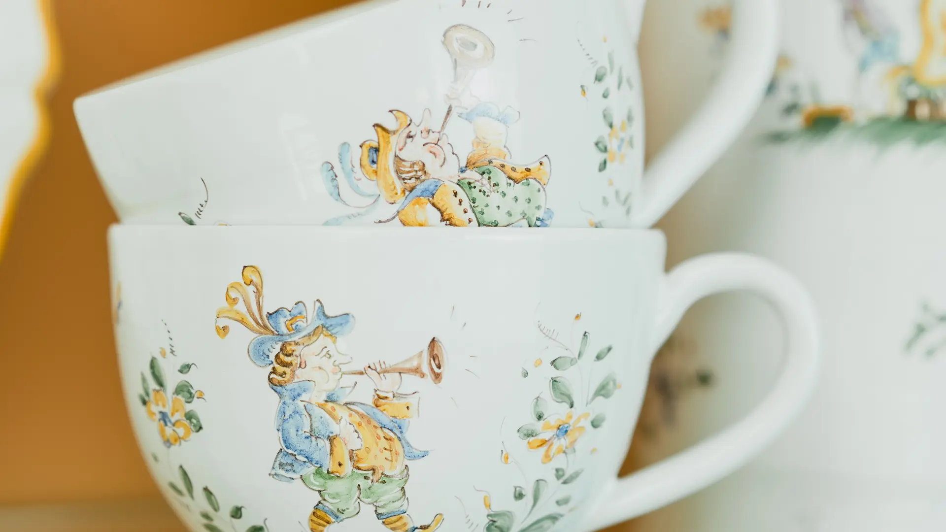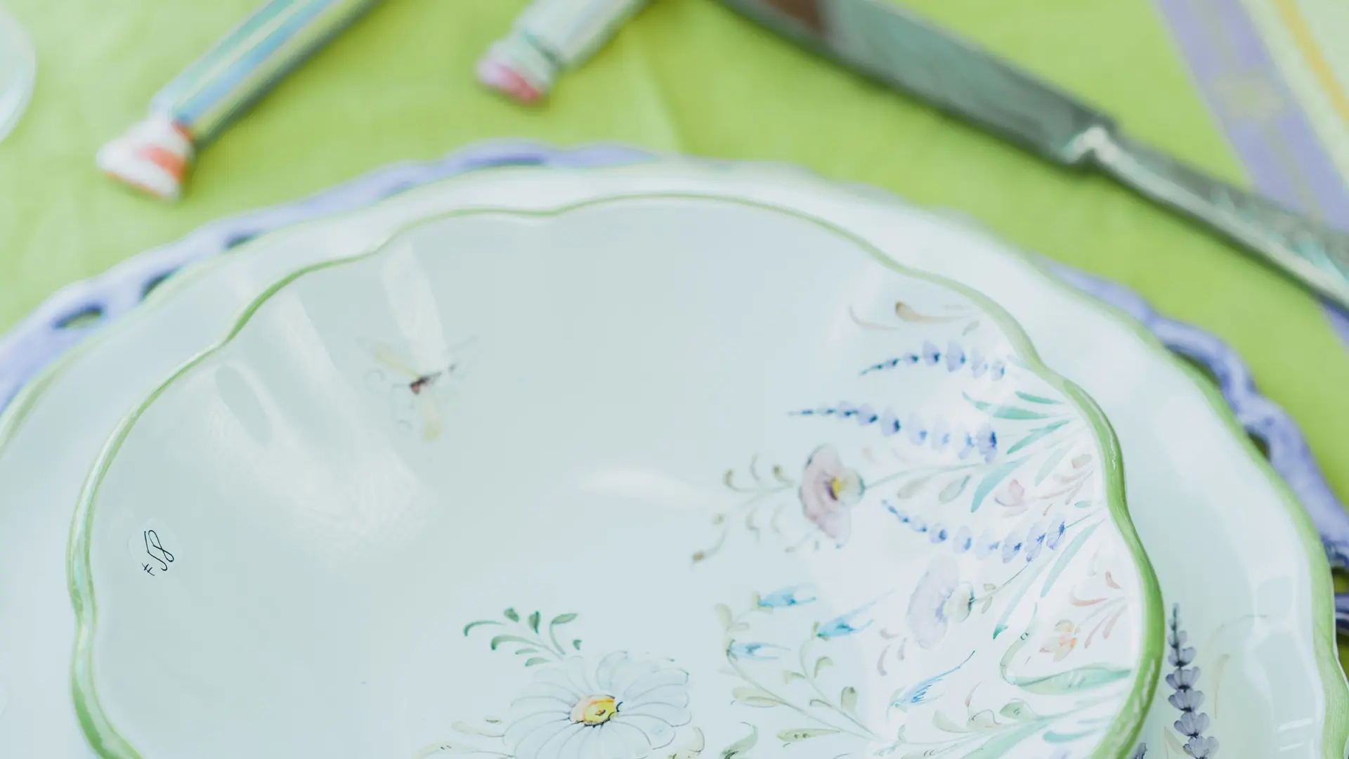 Officially recognised as an ‘Entreprise du Patrimoine Vivant’ (Living Heritage Company), the workshop uses traditional techniques to reproduce highly sought-after classics, but it also makes pieces in modern shapes and motifs to keep up with the contemporary demands from its clients. In addition, the workshop employs the ‘petit feu’ technique (motif applied onto fired, rather than unfired, glaze which can tolerate a larger choice of colours during the decorating process) making 18th century Marseille Veuve Perrin and faïence de sceaux reproductions. As part of their daily routine, Géraldine and Franck work with passion and creativity to keep the rich tradition of Moustiers’s craftmanship alive.