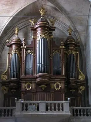 The organ sits against the wall which separates the narthex from the main nave. The instrumental part dates from 1484. It was enlarged in 1712 and given a magnificent polychrome chest created by Charles Boisellin. The structure is listed as a national Historic Monument.