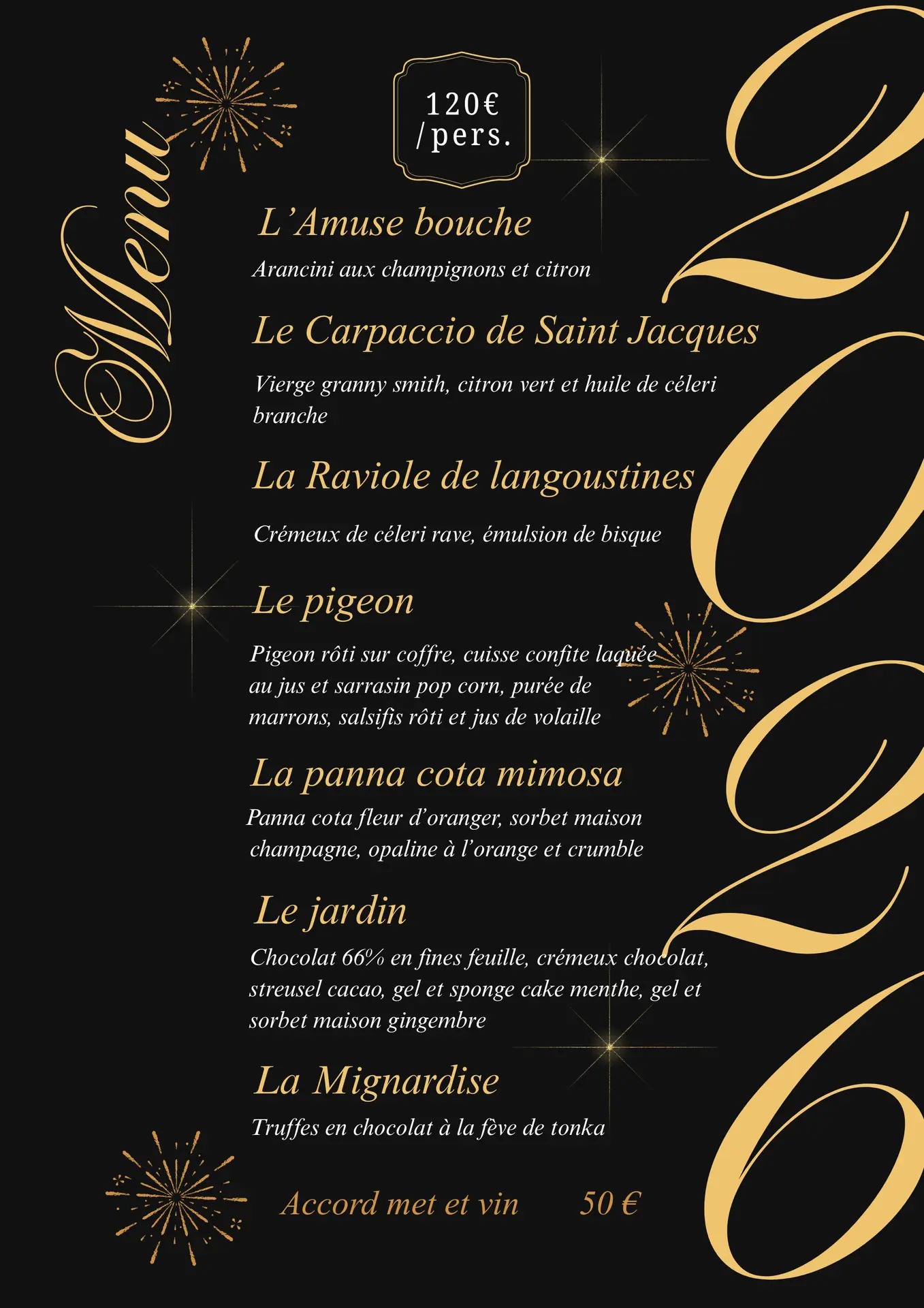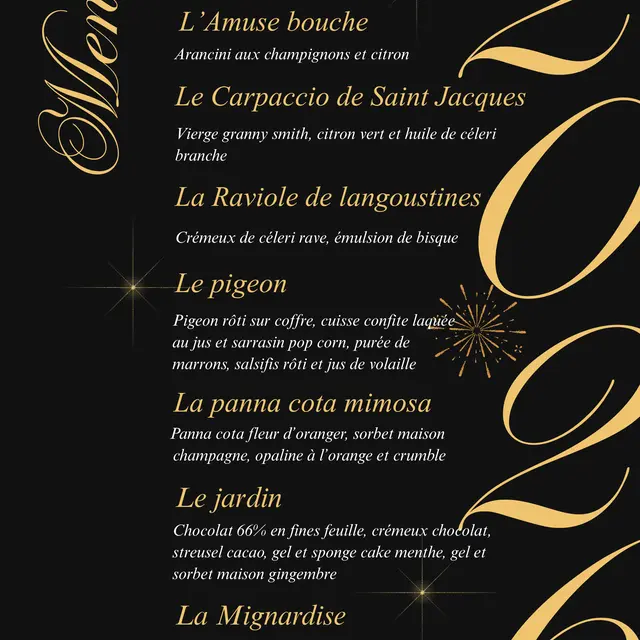 Celebrate the New Year at Aux Papillons with a refined and festive New Year's Eve menu, combining creativity, fresh produce, and gourmet delights.