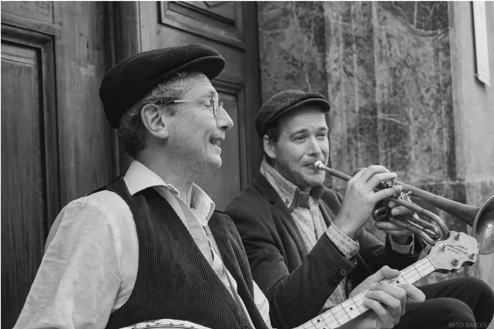 Armed with a tuba, two guitars, a banjo, a bass drum, a washboard and a trumpet, this duo makes an impression without "showing off".