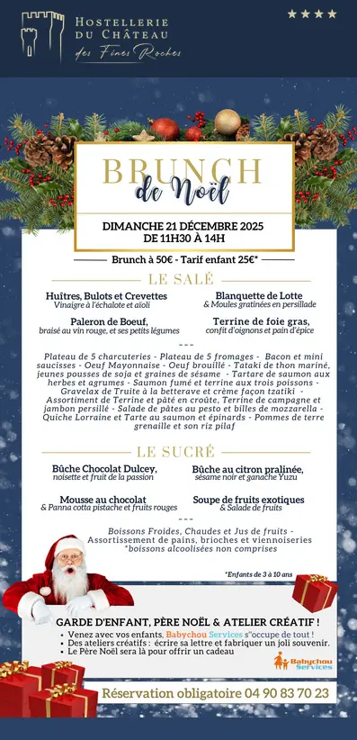 Contact Brunch de Noël à l'Hostellerie du Château des Fines Roches