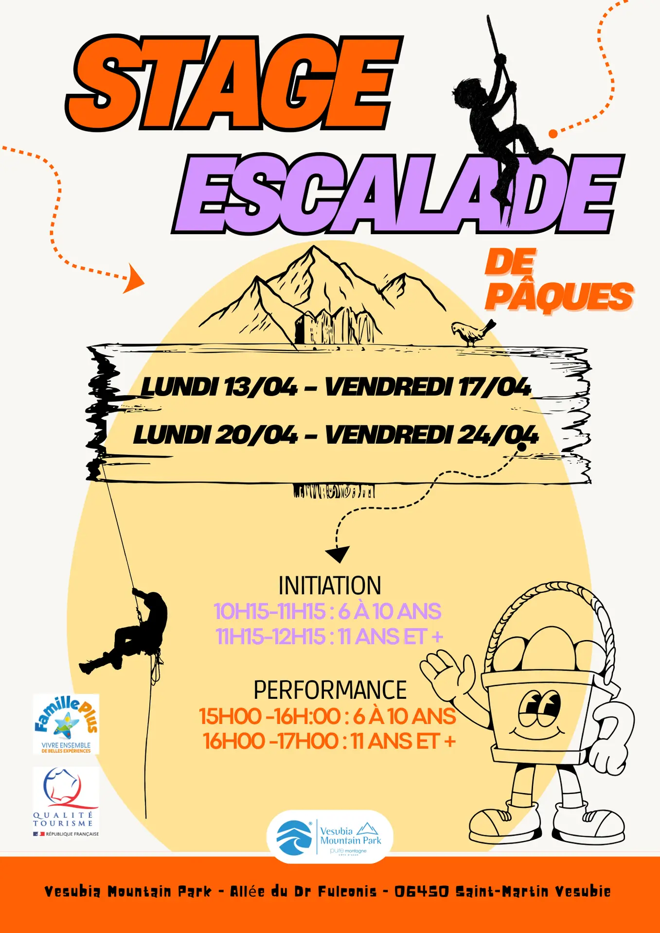 Introductory course; (1 h - 5 days in small groups (8 children) 6- 10 yrs and 11+ yrs. Supervised by a qualified instructor, perfect for children wishing to discover or rediscover verticality and learn to climb and belay in complete safety.