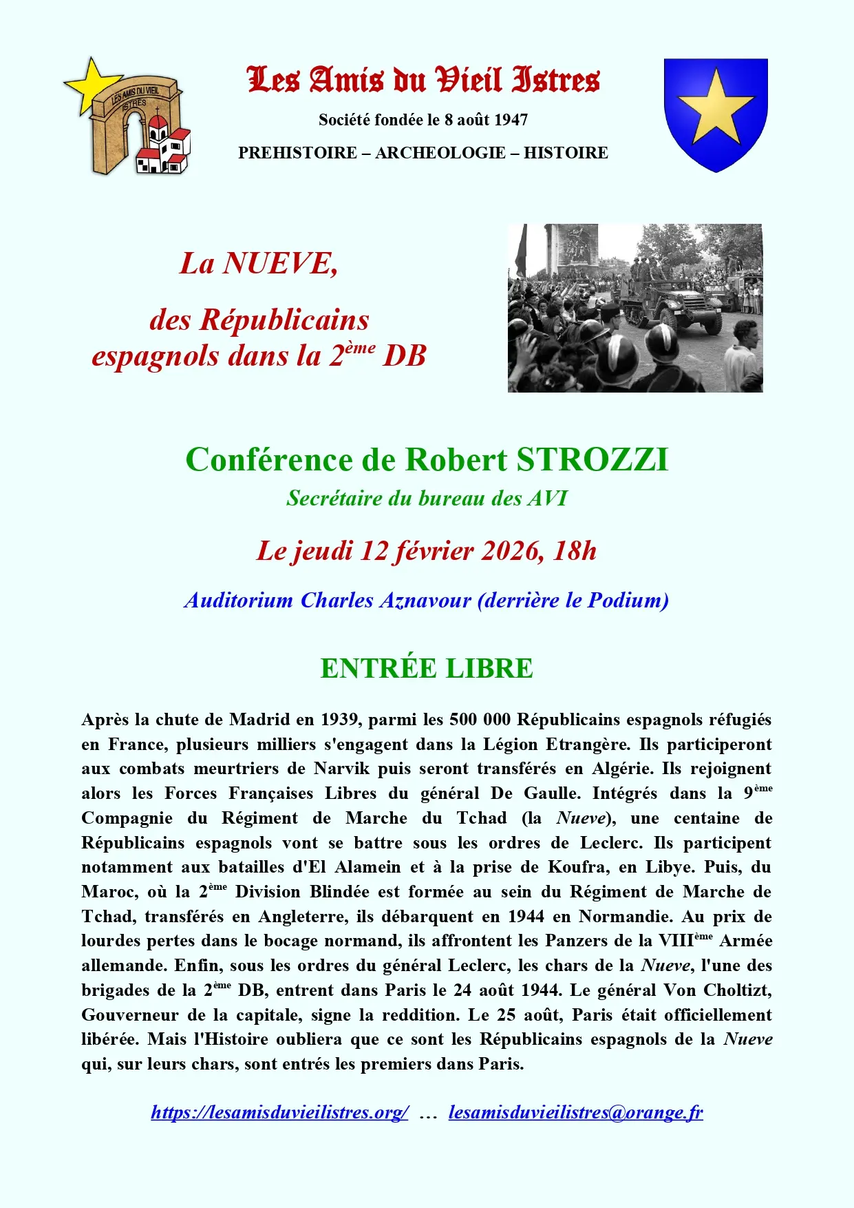 Conférence "La NUEVE, des Républicains espagnols dans la 2ème DB" par Robert Strozzi