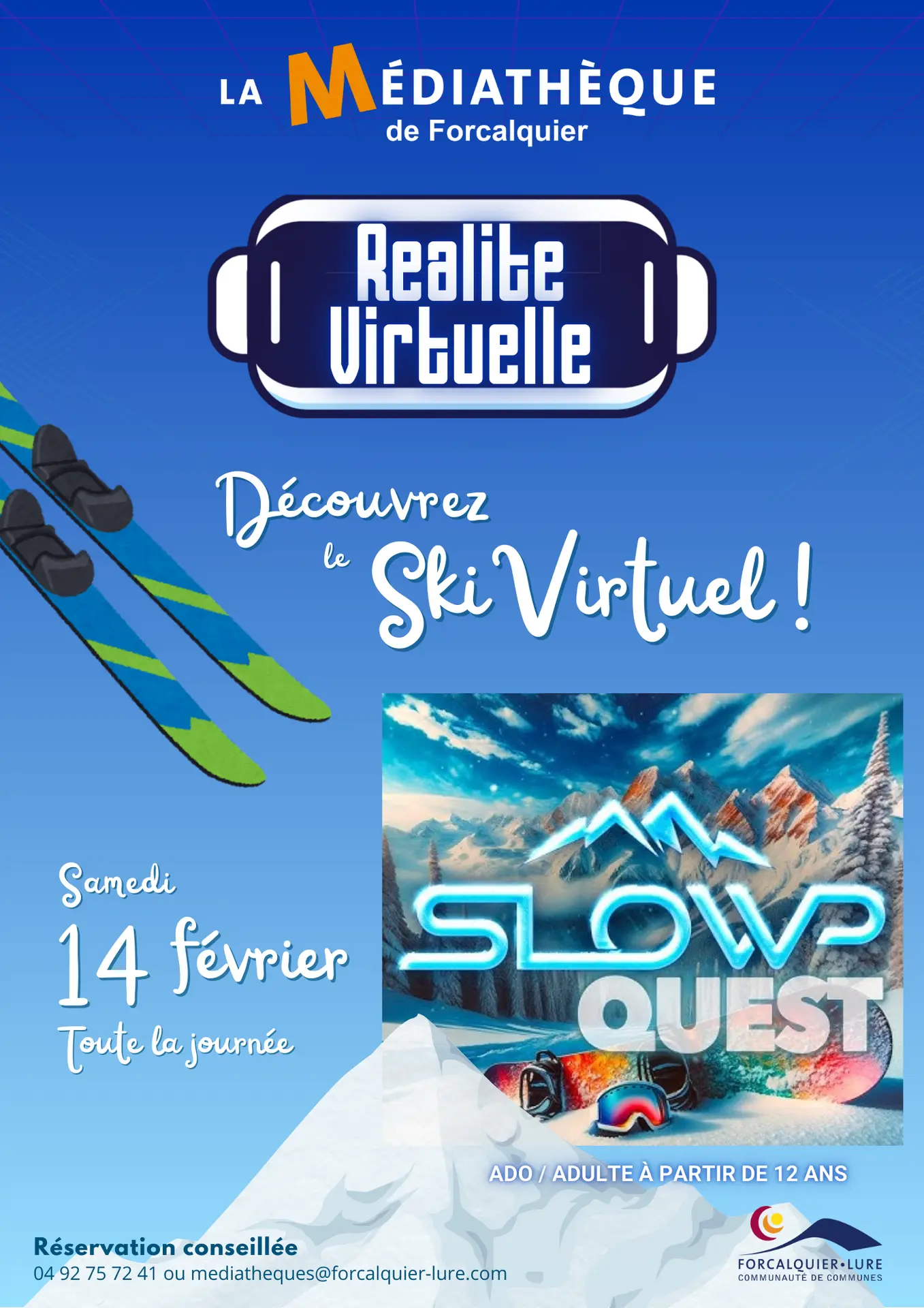 Come discover virtual reality skiing at the Forcalquier Media Library with the Slowp game, all day Saturday, February 14th!