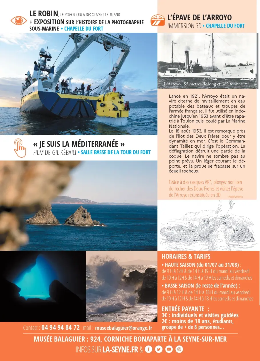 Virtual reality to plunge visitors into the heart of the underwater world (interactive tours of the Arroyo wreck in 3D and exploration of the Titanic by the Robin robot...).