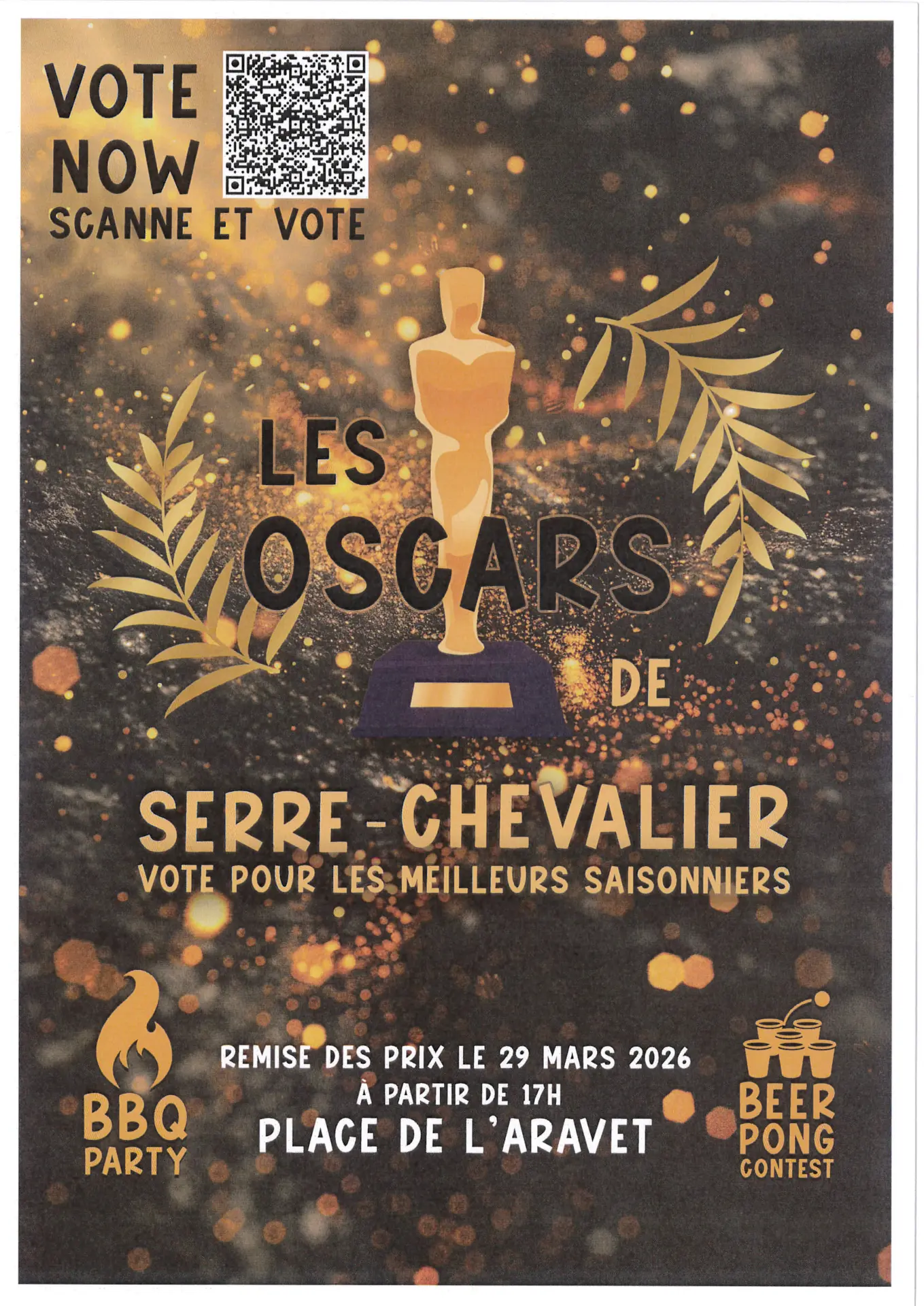An event for locals and seasonal workers. On the programme: Kikafeplouf: light waterslide competition (on skis, snowboard and sledge .....) Serre Chevalier Oscars for the best seasonal workers: scan the QR code on the poster and vote!