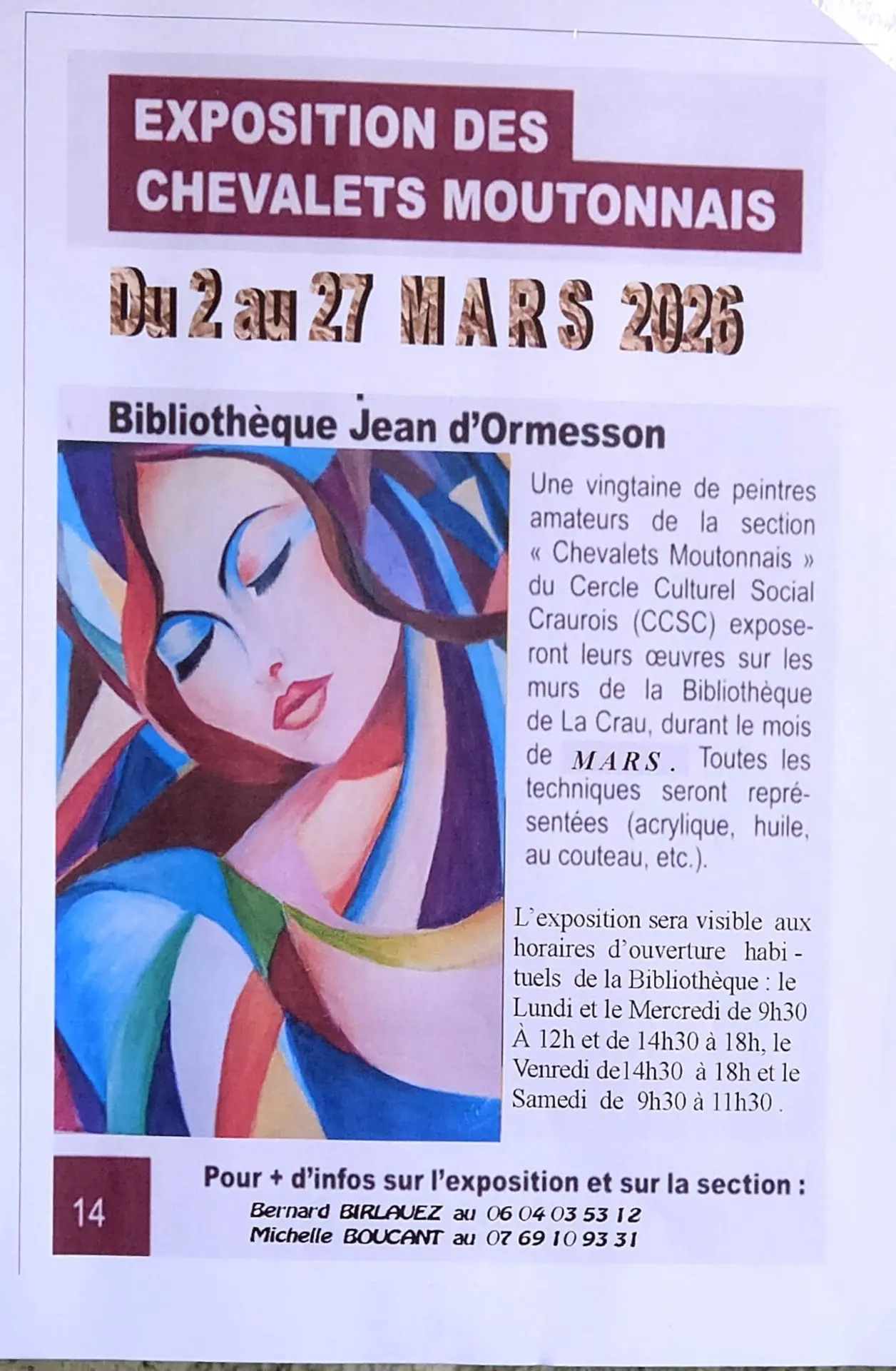 Amateur painters from the Chevalets Moutonnais section of the Cercle Culturel Social Craurois are exhibiting their work at the La Crau Library during the month of March.