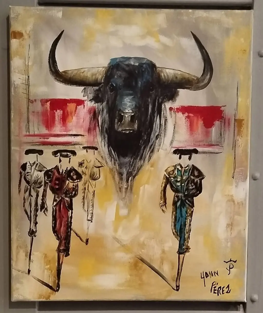 A painting full of emotion, lived through the thoughts of the bullfighter and the toro.
