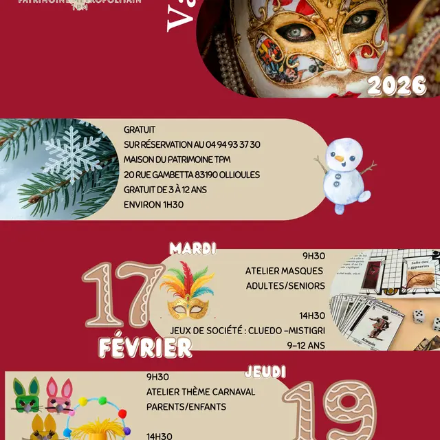 From February 17 to 26, the Maison du Patrimoine TPM invites children to immerse themselves in the world of carnival and winter.