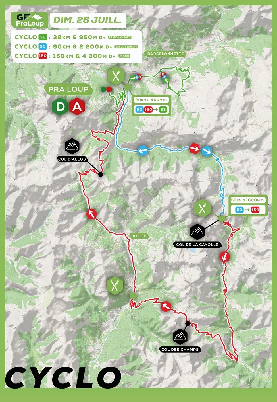 - Cyclo 38: 38km & 950m elevation gain (tour + time trial)
