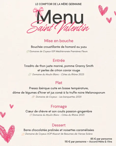 For Valentine's Day, the Comptoir de la Mère Germaine offers you a bistronomic escapade.