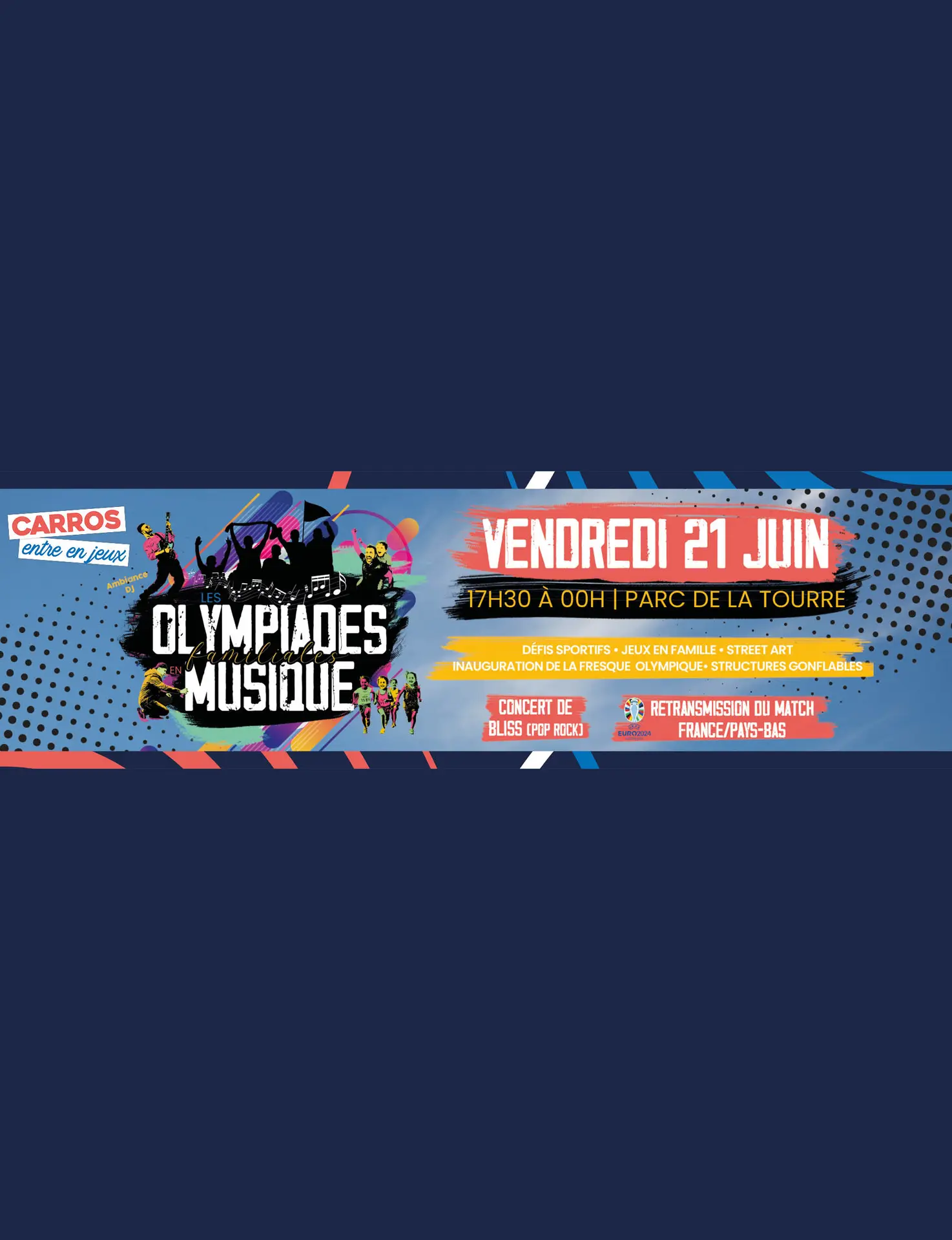 In the early evening, a pop rock concert will entertain the public before the broadcast of the EURO 2024 football match ‘France Netherlands’ on a giant screen.