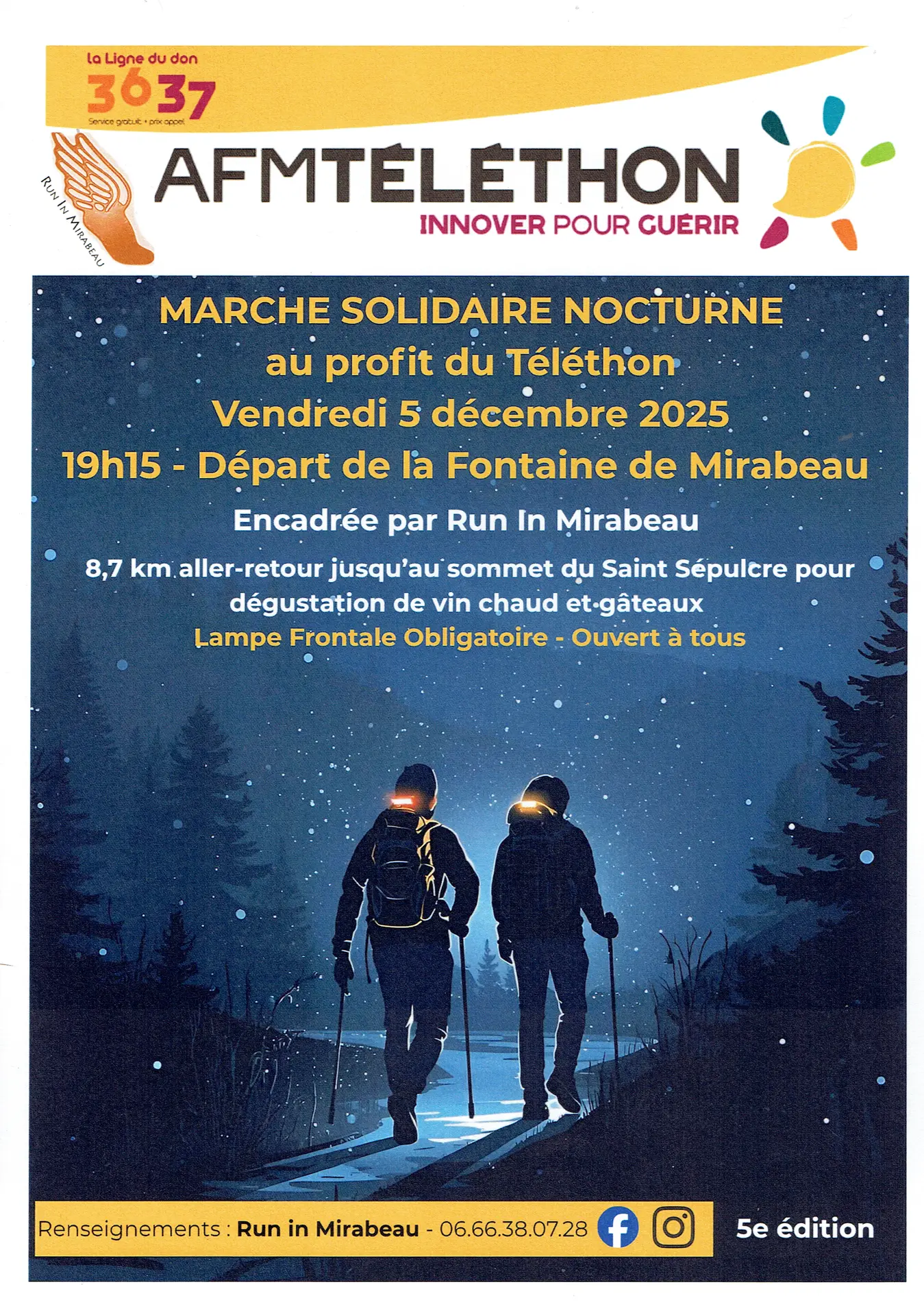 Marche Solidaire Nocturne pour le TÉLÉTHON à Mirabeau