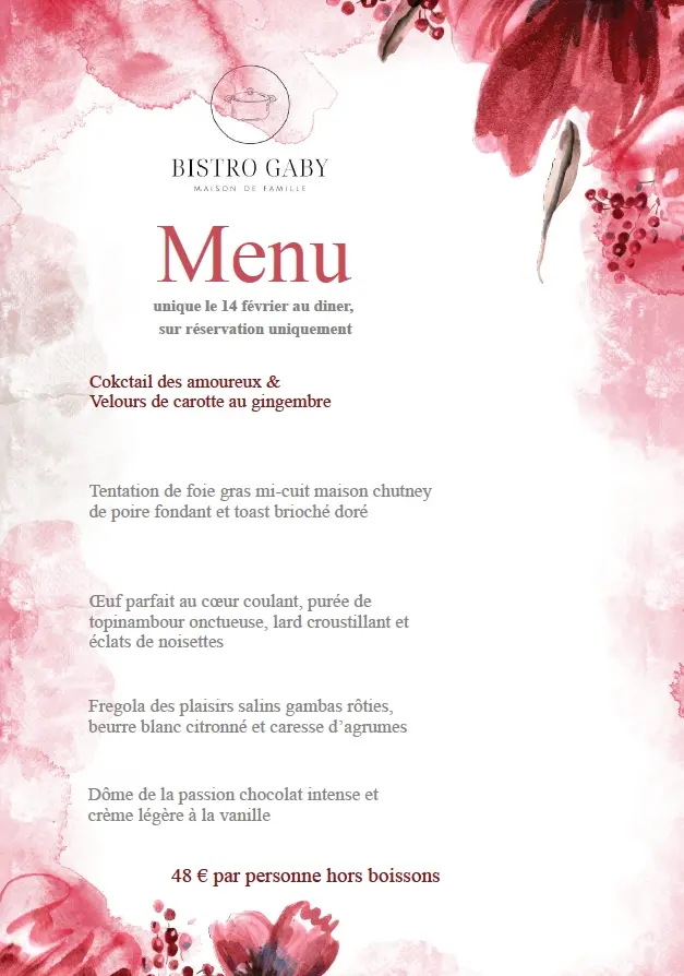 Menu de la Saint Valentin au Bistro Gaby