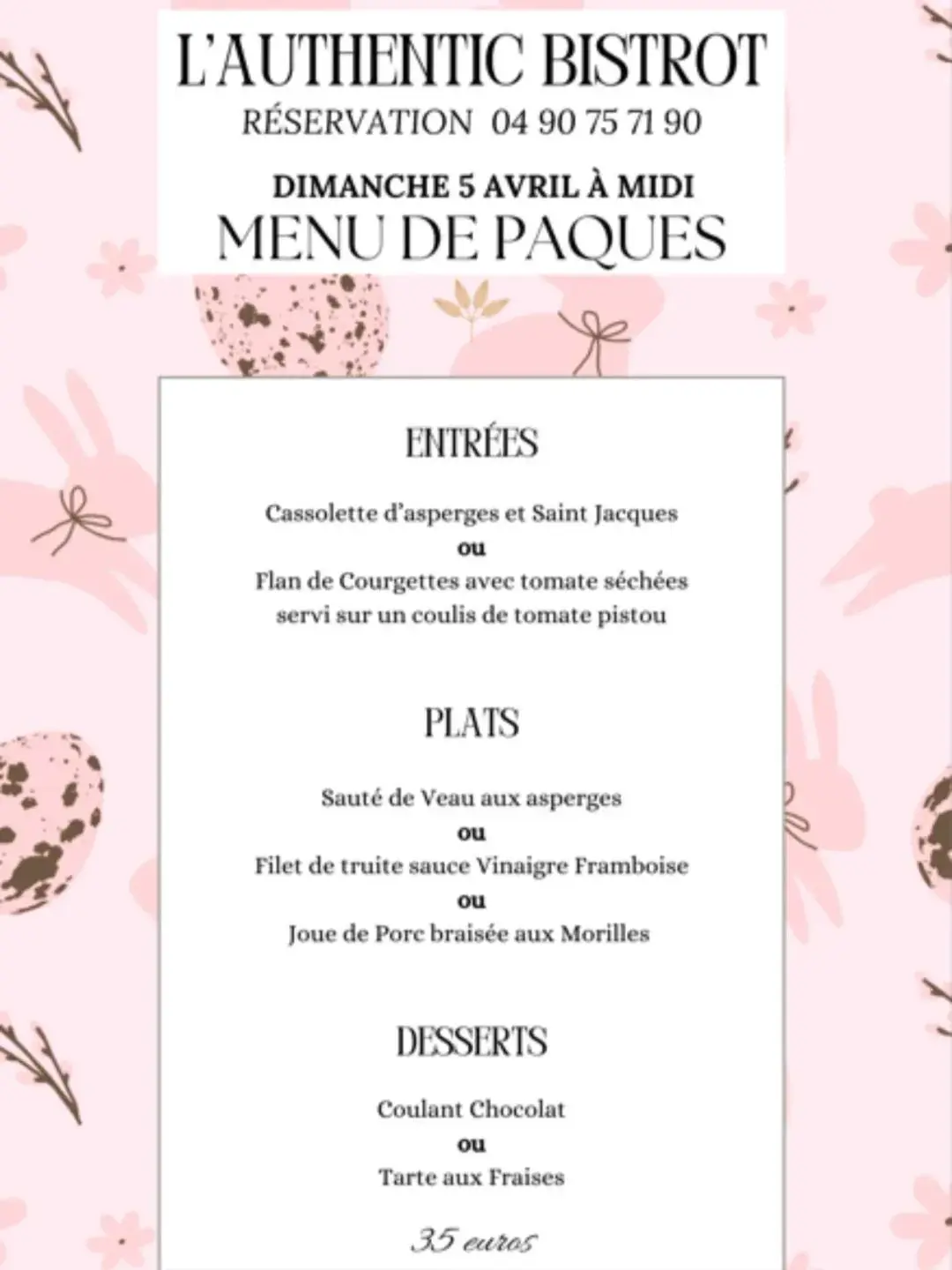 Menu spécial Pâques " Authentic Bistrot"