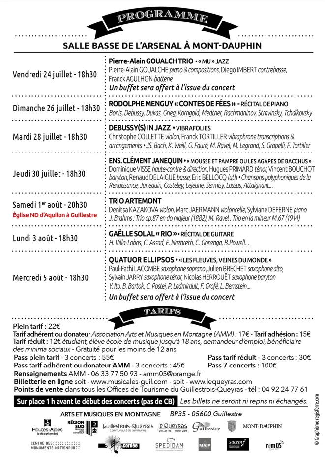 Founded in 1991 by the Arts et Musiques en Montagne association, the Musicales Guil et Durance festival celebrates classical music with renowned artists. Vibrant concerts where talent, emotion and virtuosity resonate in Mont-Dauphin.